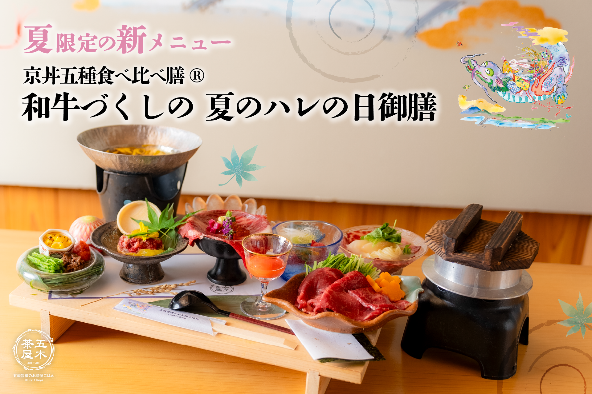 五穀豊穣のお茶屋ごはん®︎ 五木茶屋 先斗町店では、和牛を堪能できる【夏の京丼五種食べ比べ膳®︎】をご用意しています。