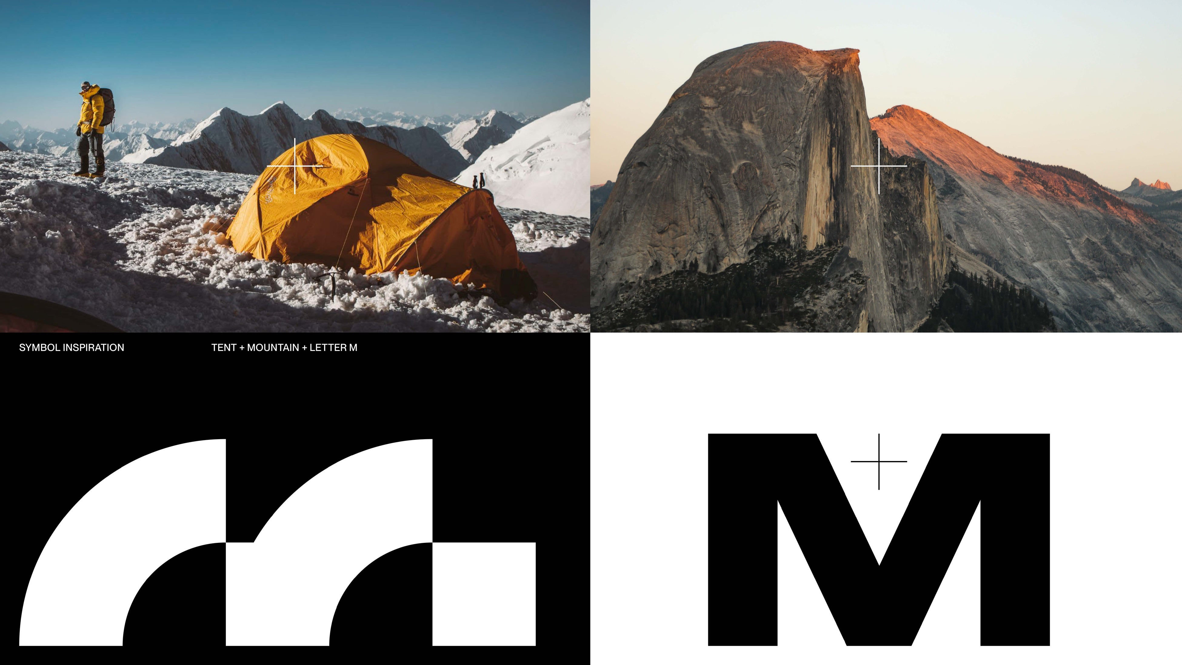 山の頂とテントのシルエット、マウンテンのMからインスピレーションを得てデザインしました。日本とドイツのグラフィックデザインに影響を受けた大胆かつ力強いフォントでありながら、緻密な空間調整による細やかな美しさを有しており、その逞しさと繊細さの調和が特徴的です。