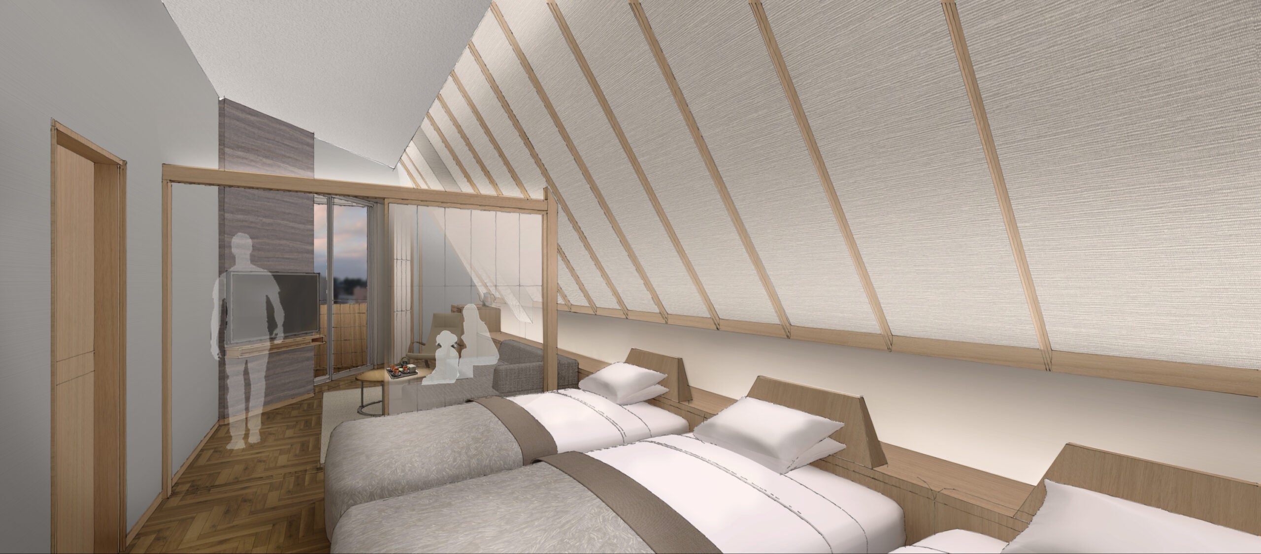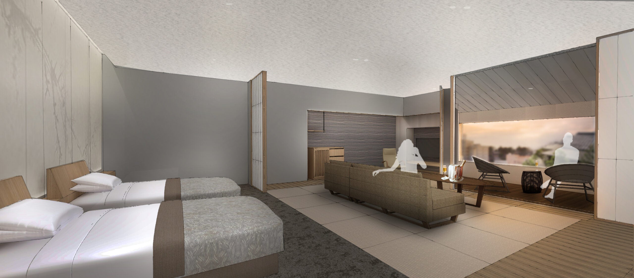 有限会社松江皆美館は、観光庁の「地域一体となった観光地の再生・観光サービスの高付加価値化事業」の採択を受け、2階のコンベンションホールと宴会場を改装し、新たな客室ブランドとして「スパスイート」を3室オープン致します。