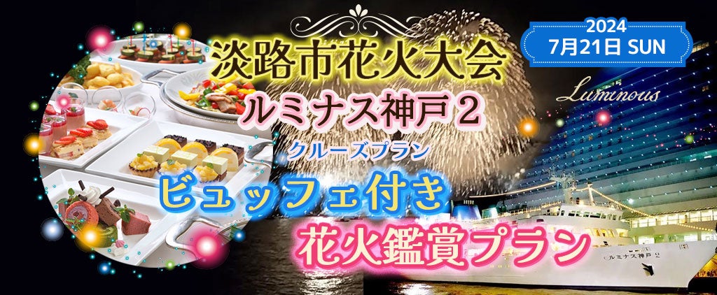 7月21日(日)限定お一人様¥15,800 淡路市の花火を船上でお楽しみいただく「淡路花火クルーズ」が今年も開催決定! ルミナス神戸2クルーズプラン船上で花火を見よう!【ビュッフェ(食べ放題)プラン】のオンライン予約を開始しました。
