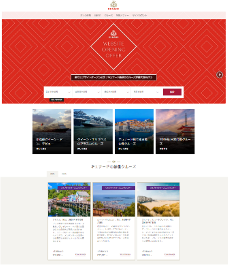 新ウェブサイトのオープンを記念して、「ウェブサイトオープニングオファー」を実施中。キュナードが誇る個性豊かなクルーズから、特にお勧めのコースを最大25%オフの特別な代金でご予約いただけます。キュナードの船旅に既に参加したことのある方も、初めての方も、そしてクルーズ未体験の方も、キュナードの輝く船旅の世界へ。船上での至高のひとときがお待ちしています。