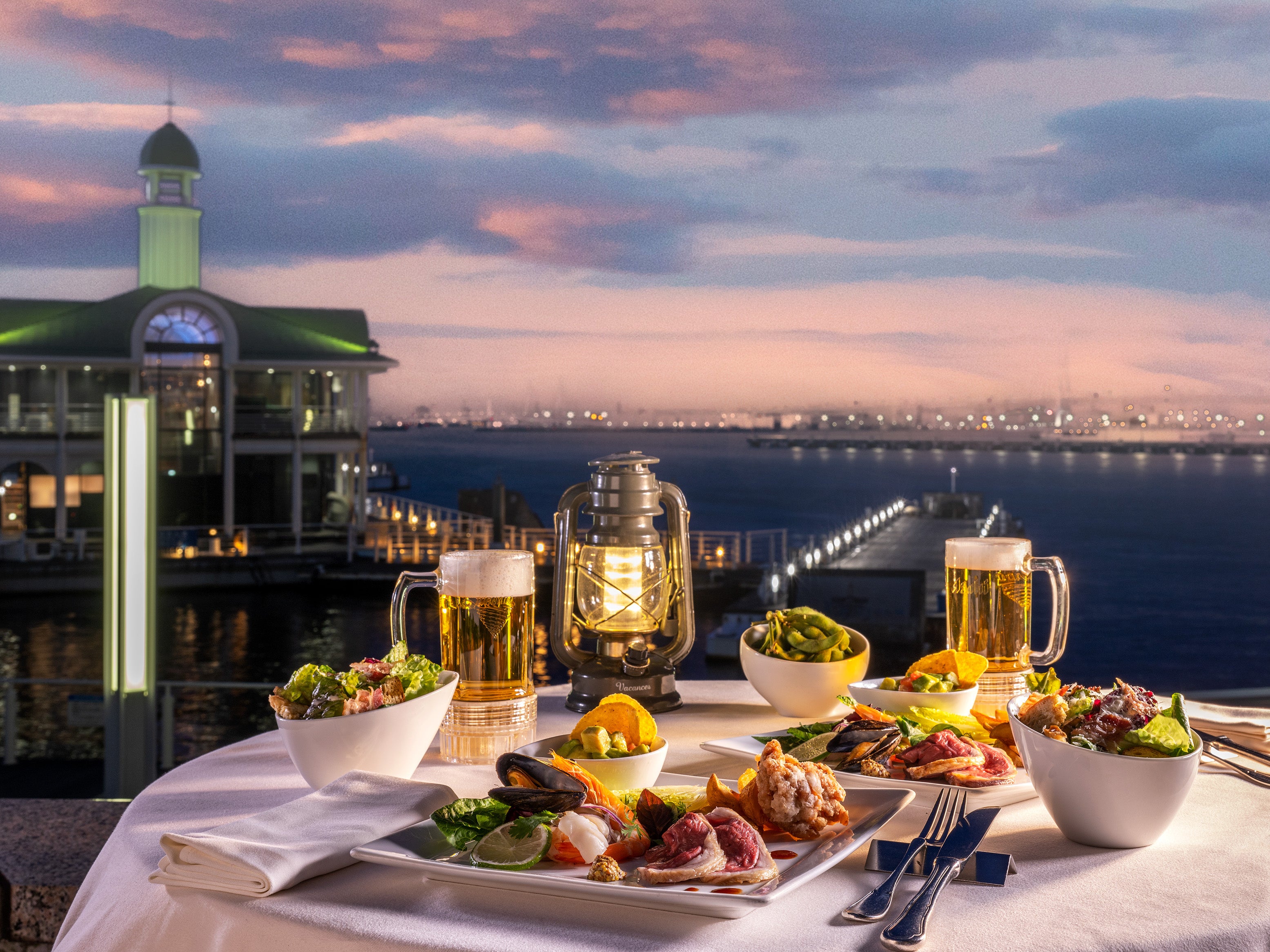 屋外で飲むビールが心地よい季節。今年はリゾート気分で、海をバックにホテルのベイサイドテラスでのビアガーデンはいかがでしょう。目の前に広がるのは横浜の雄大な海、さらにみなとみらいの華やかな夜景が楽しい夜を彩ります。