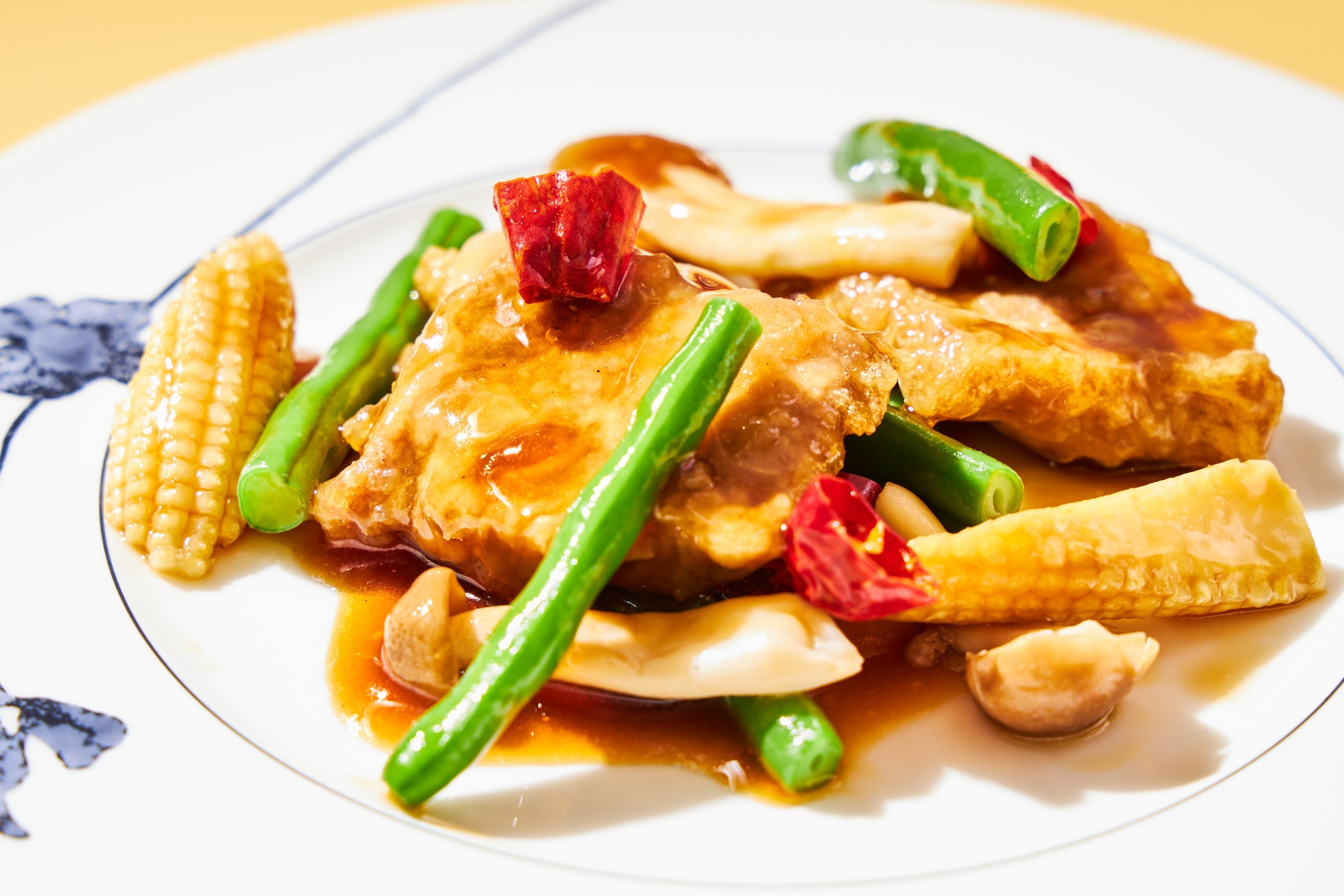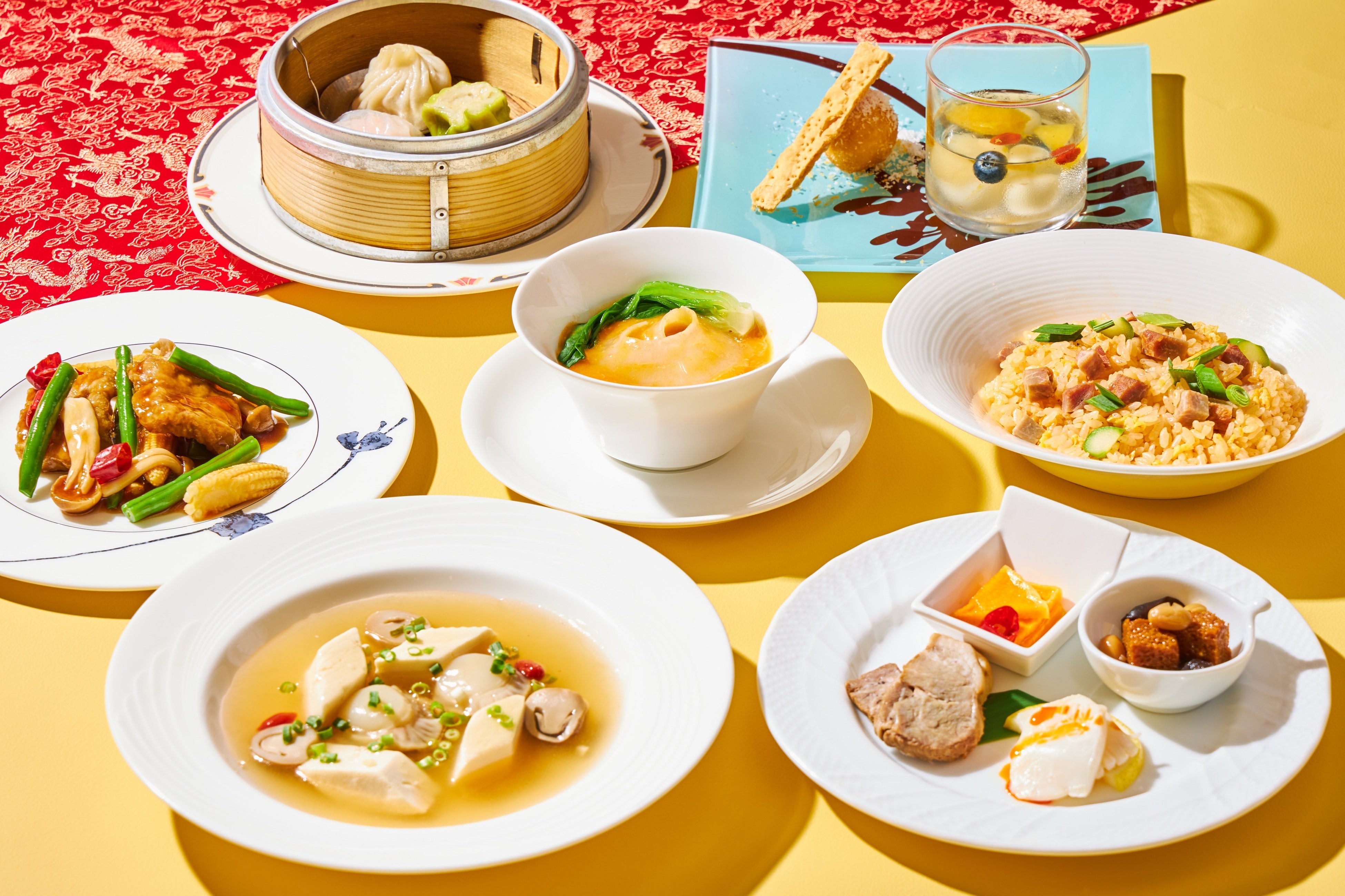 前菜からデザートまで、全7品の本格中国料理をリーズナブルな価格でお楽しみいただけます。四川料理からは“和牛といんげん 唐辛子炒め”をご用意いたします。辛味の中にある奥深い旨みをご堪能ください。上海料理からは、“上海蟹味噌入り ふかひれ姿煮スープ”や“帆立貝と豆腐 海鮮ソース煮”をご提供いたします。海鮮の旨みを引き出した濃厚な味付けをお楽しみください。食事は3種類からお選びいただけ、“ピータン粥“は独特な味わいながらも幅広い年齢層から愛されている一品です。