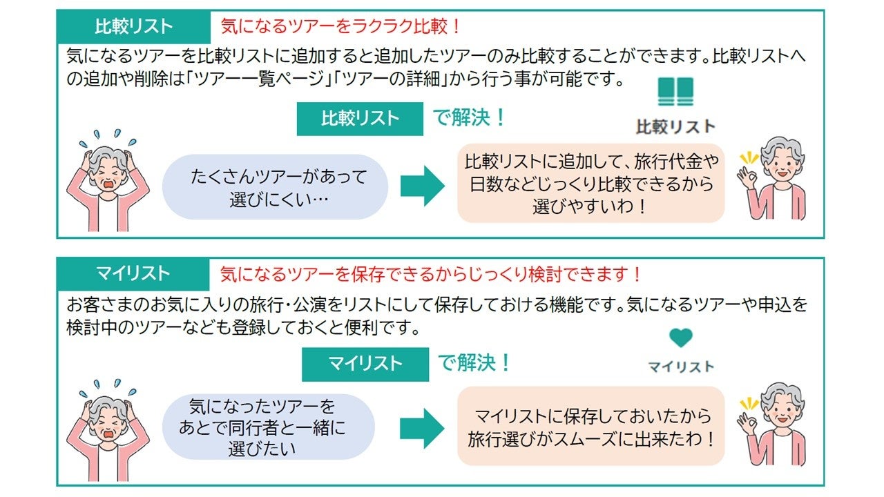 また、催行中止による予定変更の心配がない「催行決定ツアー」のご紹介、他のお客さまのご意見も参考にされたい方のための「国内ツアーランキング」と、旅選びに迷われる方のためのお手伝いとなるご提案もしております。