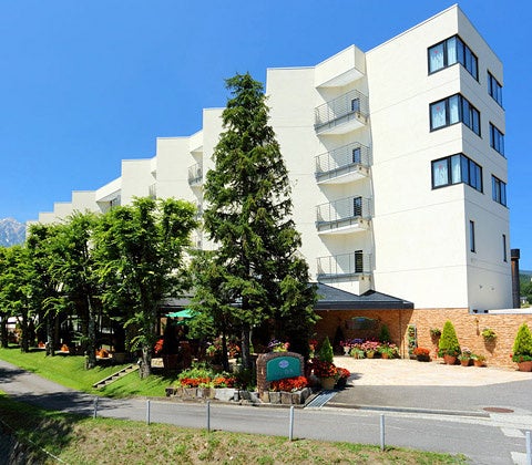 ホテル白馬は、北アルプスが一望出来るロケーションと手作りバイキングが人気のホテルで、エントランスや館内外各所で季節の花が美しく咲き誇り、その彩りと香りが、旅の疲れを癒してくれます。花々とホテルスタッフが温かくゲストをお出迎えいたします。