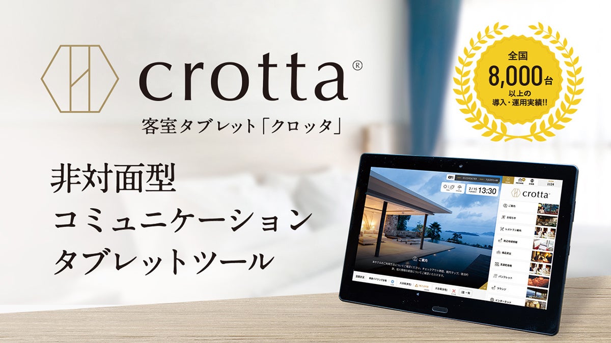 施設内業務の省人化、効率化が求められている現在、いかにITを駆使してサービスレベルを下げず業務改善をおこなっていくかが施設運営の鍵となってきます。客室タブレット「crotta」は、その改善の第一歩となるサービスです。