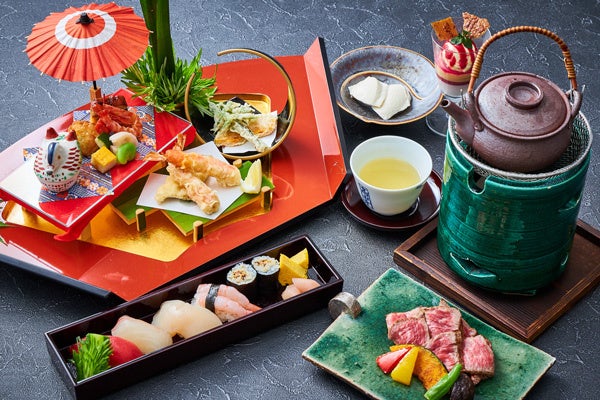 その他、インバウンドをメインターゲットにした季節の膳を新たにご用意いたします。高まるインバウンド需要に応えるべく、人気の日本料理をまとめて召し上がっていただけるように、味はもちろんのこと見た目にも日本らしさや華やかさを取り入れました。天麩羅やお寿司、国産牛の鉄板焼き、お店の顔となる日本料理には欠かせない一番出汁など、代表的な日本料理を一度にお楽しみいただけます。ゆったりとした時の流れを感じさせる、落ち着きのある空間で、伝統ある日本料理をお楽しみください。