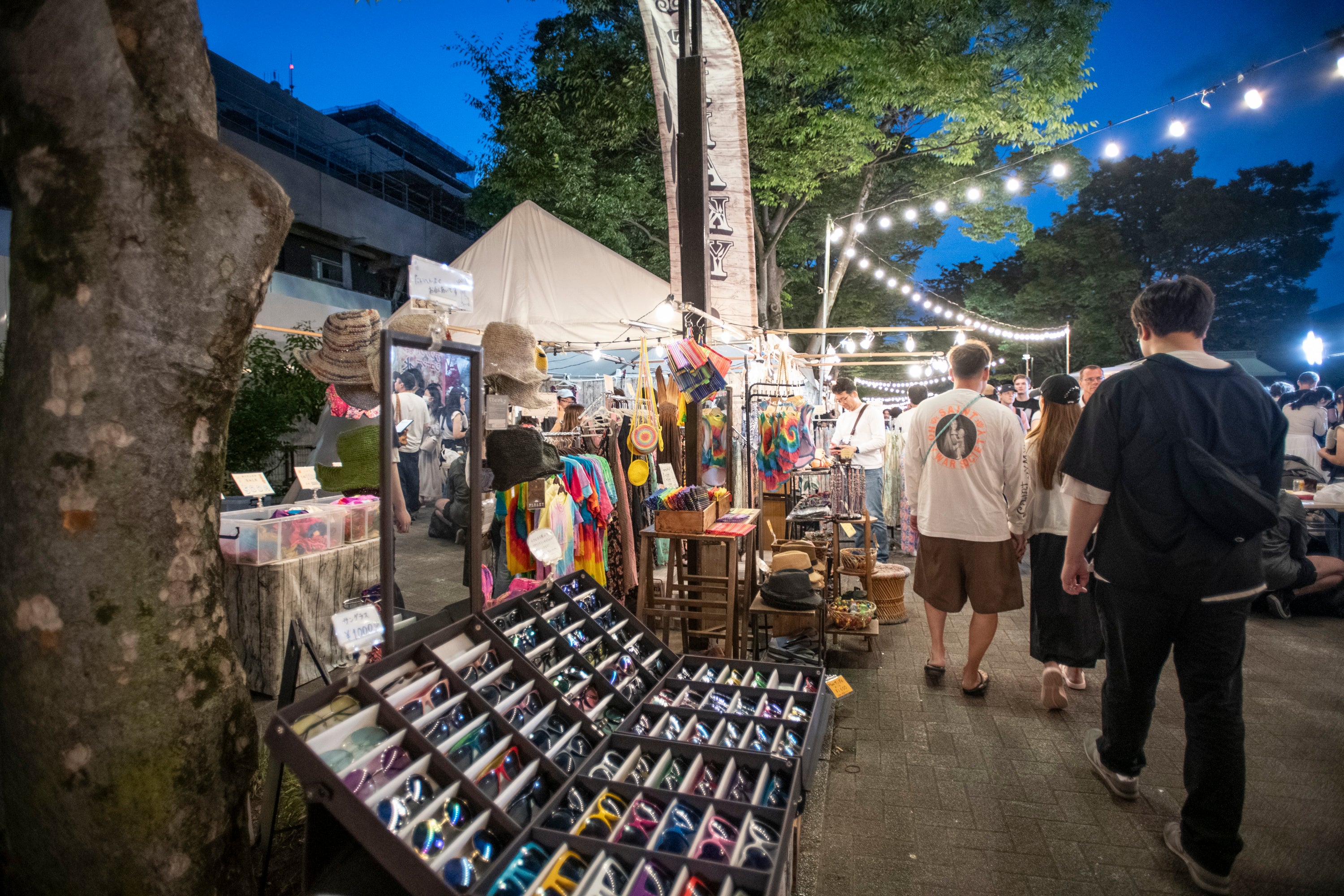 昨年2023年10月、「東京×アジアの夜市」をテーマに、代々木公園では初の試みとなる夜22時までの開催を実現した本イベント。第二回目となる今回は5月22日〜26日の5日間、会場は同じく代々木公園ケヤキ並木にて開催された。初回からのリピーターや、SNSや口コミを通じて日を増すごとに来場者が詰めかけ、音楽とアート、マーケットを楽しんだ。