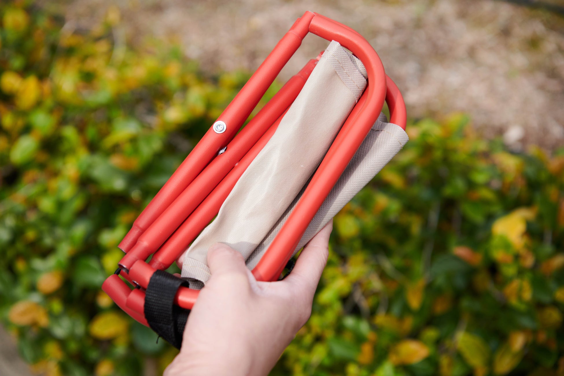 創業1853年、天然ゴム製のラバーブーツがアウトドア派にも人気のAIGLE。そのブランドイメージにピッタリの、赤とベージュの小洒落たチェア。ベージュの座面にAIGLEのロゴが映えます! クーラーボックスやウォータージャグを置く台として使っても便利です。