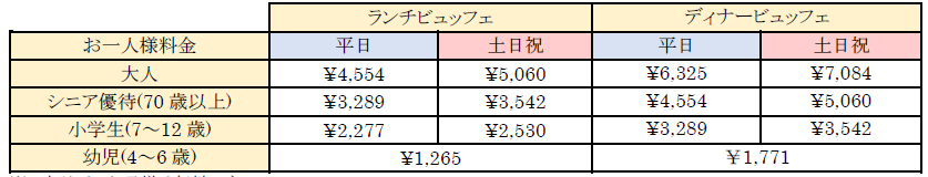 ※お盆期間(8/10~8/15)につきましては、料金・内容ともに変更になる場合がございます。詳細は公式HPをご確認ください。