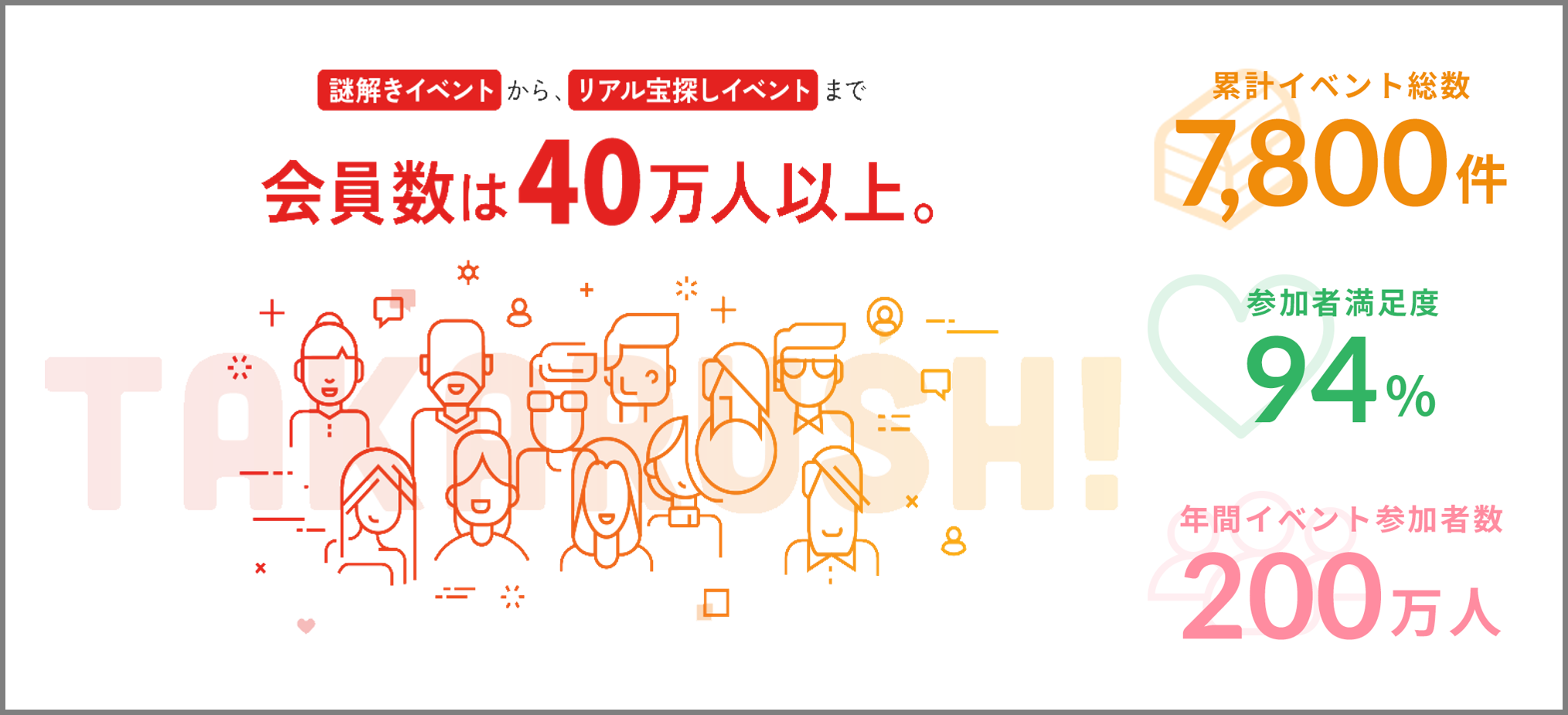 タカラッシュは、宝探しイベントを通じて「身に染みる遊び」を提供しています。
