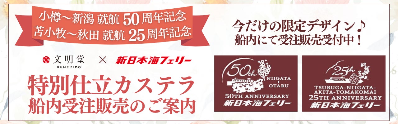 新日本海フェリーは、文明堂東京とコラボレーションした特別仕立カステラの受注販売を各船船内にて開始しました。