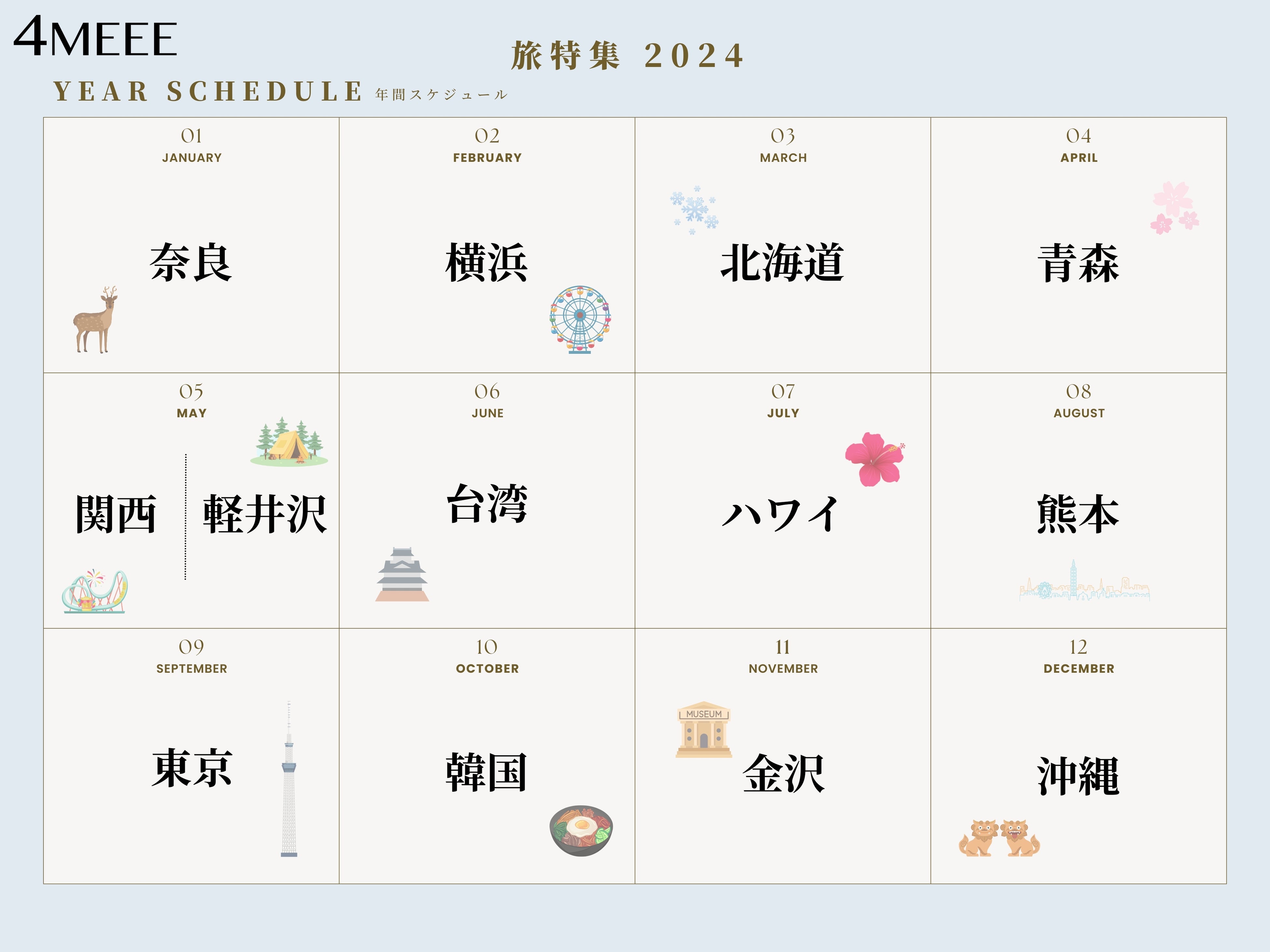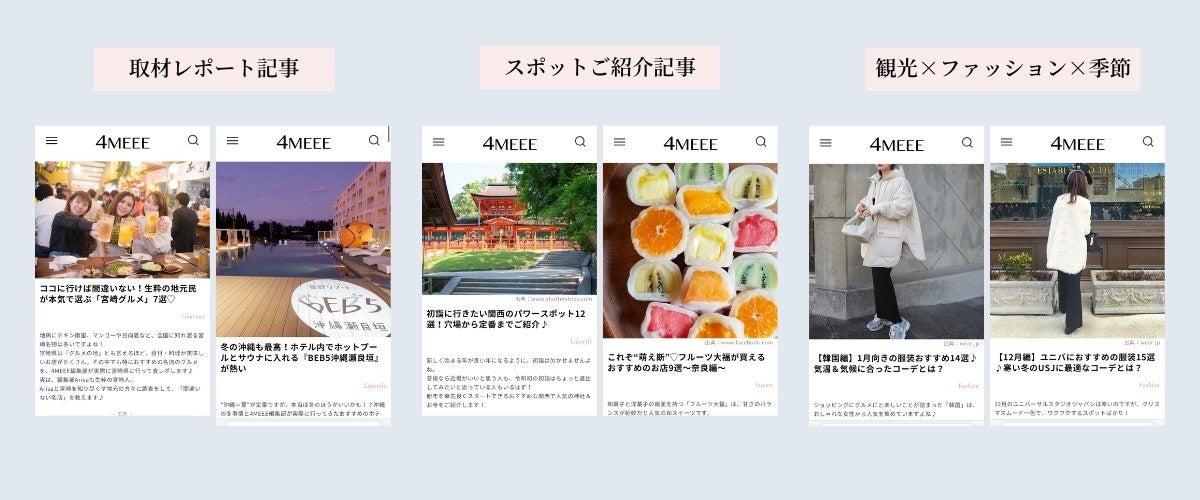 など、旅行をひかえた人たちに向けて、4MEEEの独自目線による記事を多数掲載予定です。