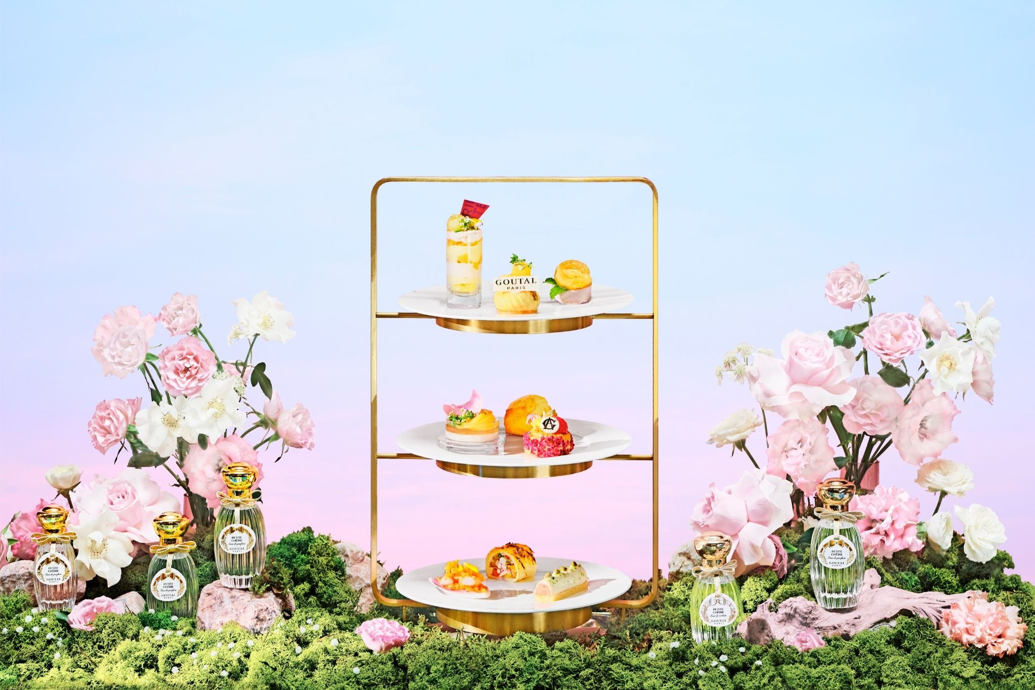 フレグランスメゾン〈グタール〉の香り、装花ブランド〈スピン〉によるフラワーの世界観を融合し、五感で愉しむサマーアフタヌーンティー!