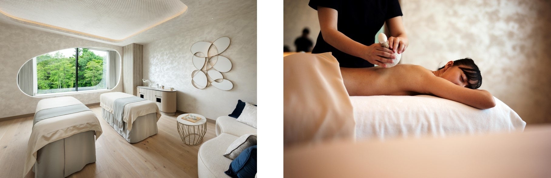 今回から、ホテルに滞在中、運転者もしくは同室の方のどちらかが90分以上のスパトリートメントメニューを受けることで、試乗特典を得られるようになりました。その中でもおすすめのメニュー「レストアボディ&マインド」は、ご要望に合わせてパーソナライズされたボディマッサージを通じて、お体の各部位にエネルギーを取り戻します。さらに、アメリカのラグジュアリースパブランド ISUN(アイサン)からの3種類のブレンド精油からお好みの香りを選び、心も浄化へと導きます。その他にも、静岡のエッセンスがたっぷり感じられる「OMIKA グリーンティーコンプレス」は、静岡県産の季節の緑茶と気血の巡りを助ける薬草をブレンドした温かい薬草ボールを全身に押しあてながら、茶の実オイルでお体を包み込むようにマッサージする、まさにお茶尽くしのトリートメントです。試乗で高ぶったアドレナリンと、スパトリートメントという静寂の癒しを融合させた、唯一無二のラグジュアリーステイを楽しんでみてはいかがでしょうか。