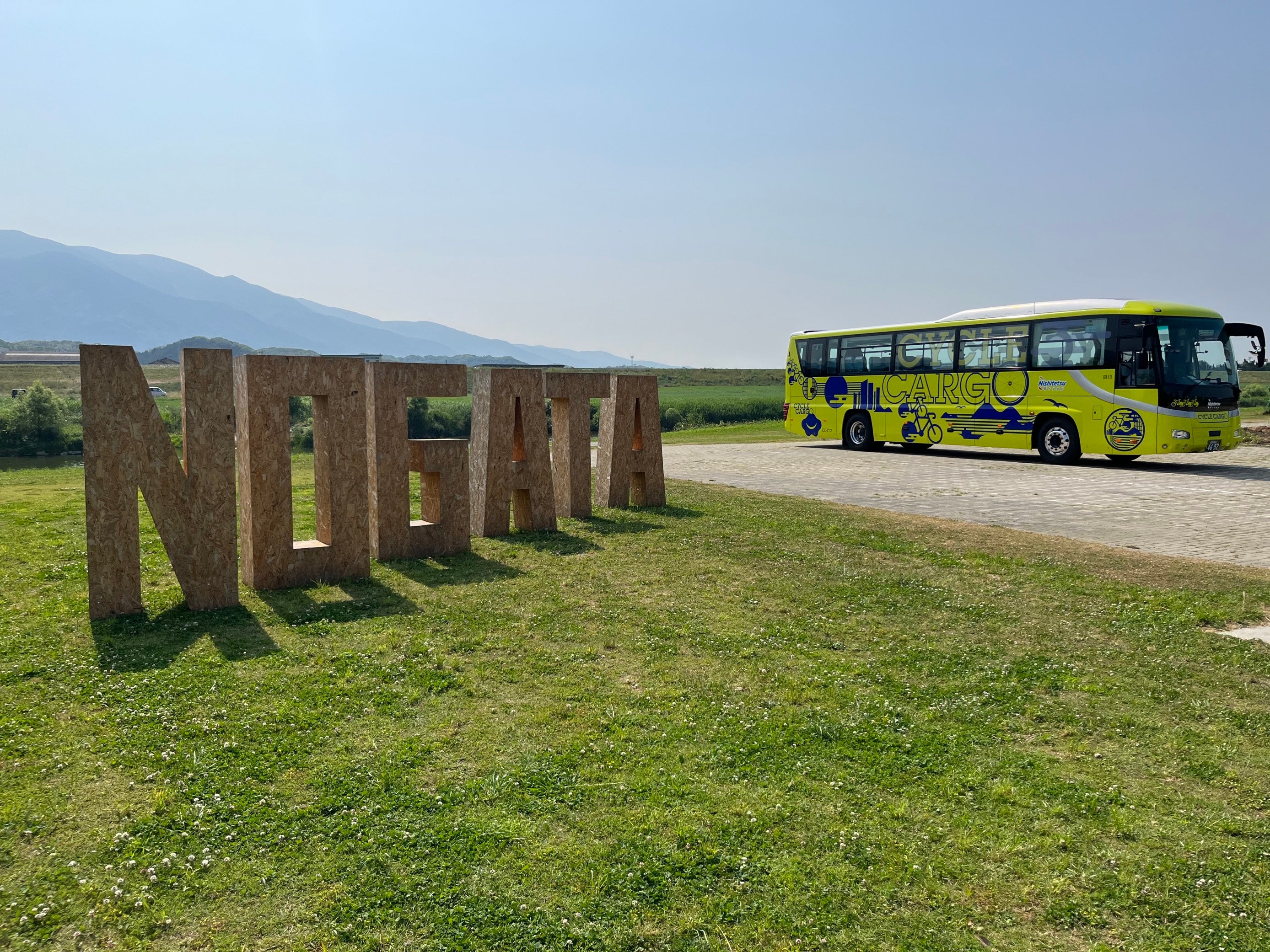 ・2日目のスタート地点ではリバーサイドパーク直方にて、出発式。出発式の会場には直方市役所の皆様がモニュメントを設置して下さり、「西鉄CYCLE CARGO」とともに映える写真を撮ることができました。