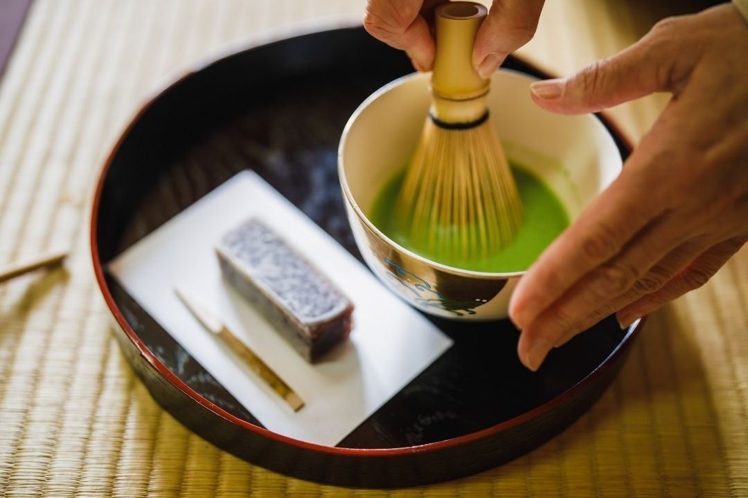 自分で作った茶杓と茶筌で、美味しい和菓子と共に抹茶を堪能します。茶人ガイドから抹茶の点て方のポイントを教えてもらえるので、ゲストのみなさんは、自国に帰った後も美味しい抹茶が楽しめるようになります。