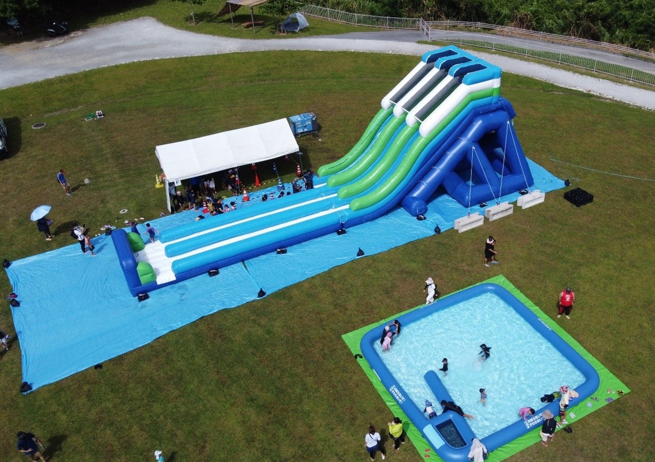 暑い夏にはぴったりのウォーターパークをキャンプ場に作っちゃいます!なんといっても目玉は、20mビッグスライダーです。ドキドキワクワクを自然のど真ん中で味わってみてください。小さいお子さまも楽しめるよう、水遊びエリアもご用意していますので、家族みんなで楽しめます。