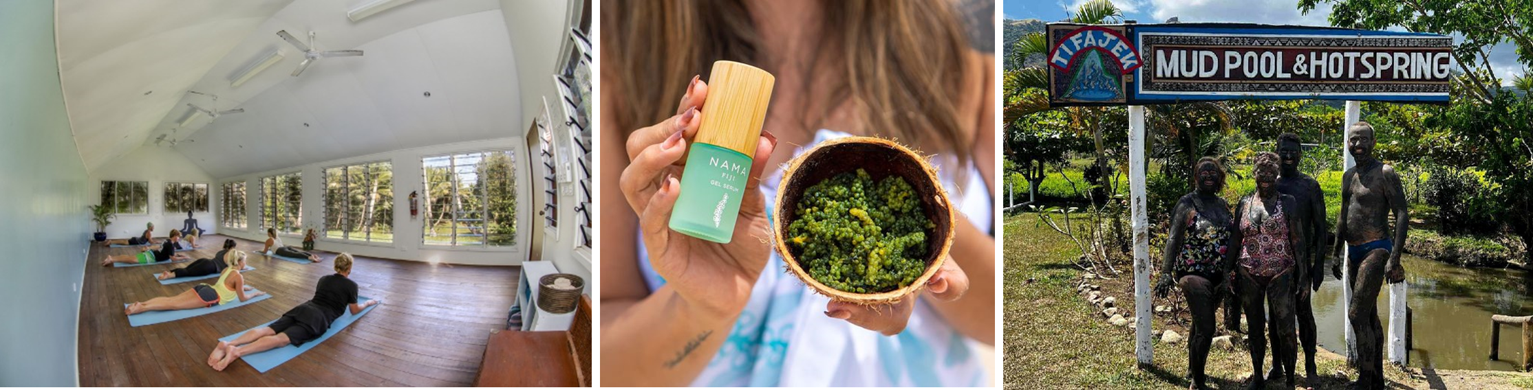 フィジーでのウェルネス体験は、例えば、新たにウェルネス・プログラムを導入したワイドロカ・ベイ・リゾートをはじめ、ファームトゥテーブル(農場から食卓へ)のコンセプトの元、敷地内で野菜を育てているシェラトン・フィジー・ゴルフ&ビーチリゾートなど、多数のリゾートで体験できます。また、海ぶどうを使って肌の活性化や老化を防ぐという化粧品プロダクト「Nama Fiji」や観光名所となっている泥温泉での泥パックなどもあげられます。