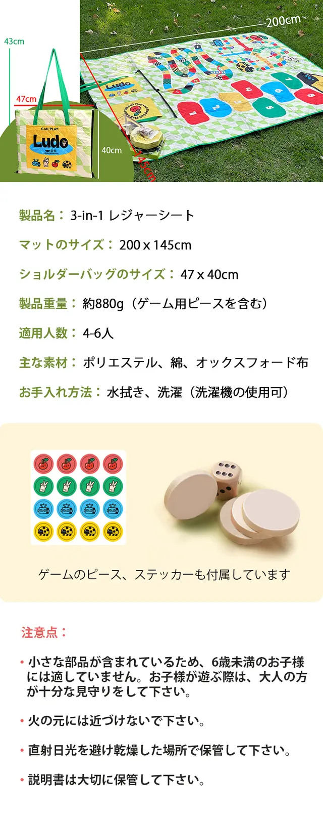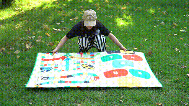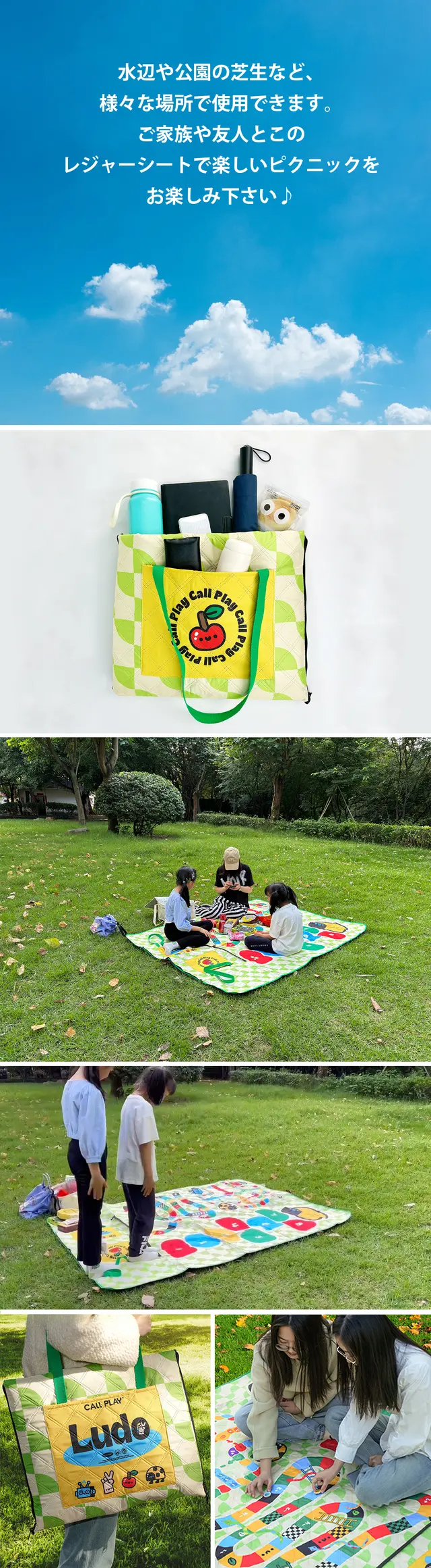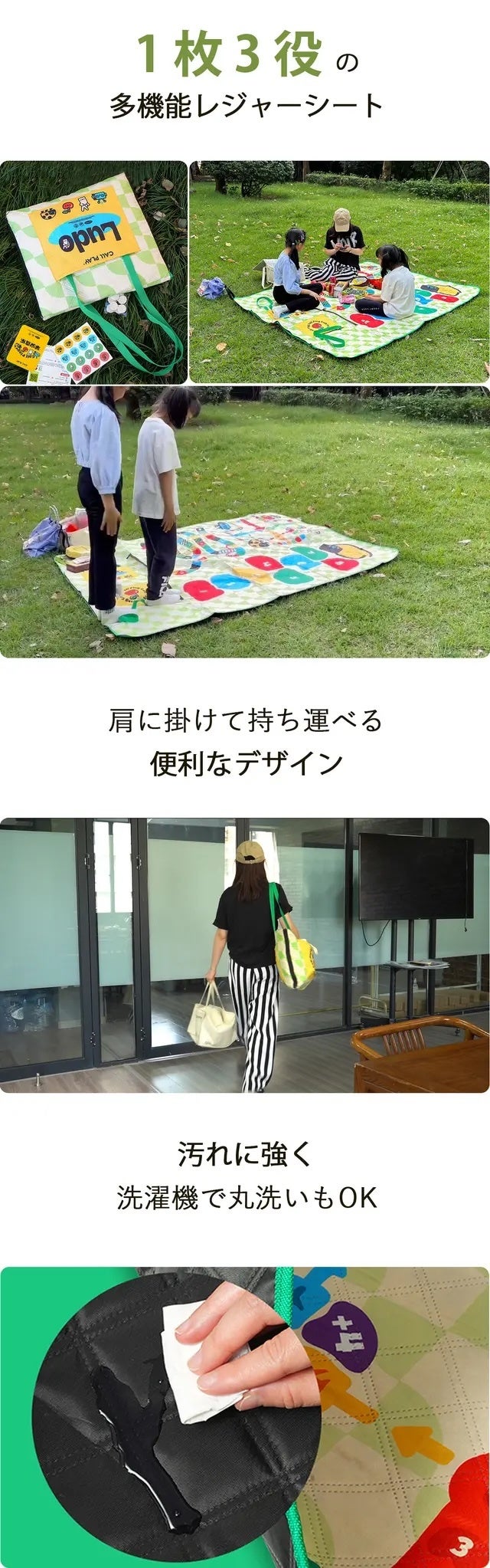 この3-in-1 レジャーシートは、ピクニックマットでありながらゲームを楽しむことができ、しかも持ち運びも簡単!