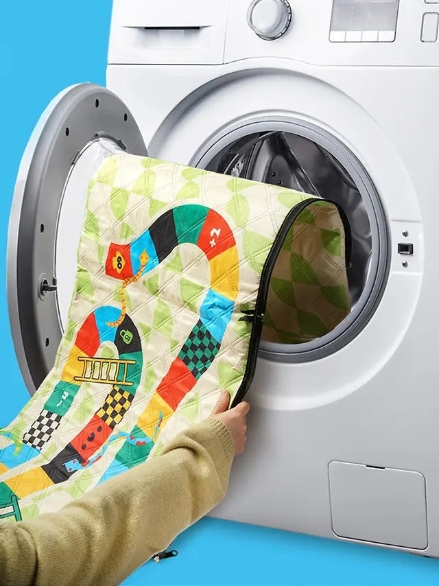 マットの表地は白とグリーンを基調とした優しいカラー。そこにパッと目を引くカラフルなゲームのデザインが描かれています。この可愛らしいマットは大注目されること間違いなしです!