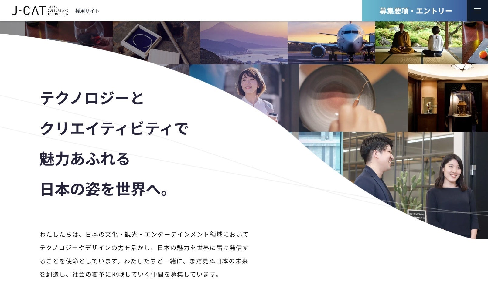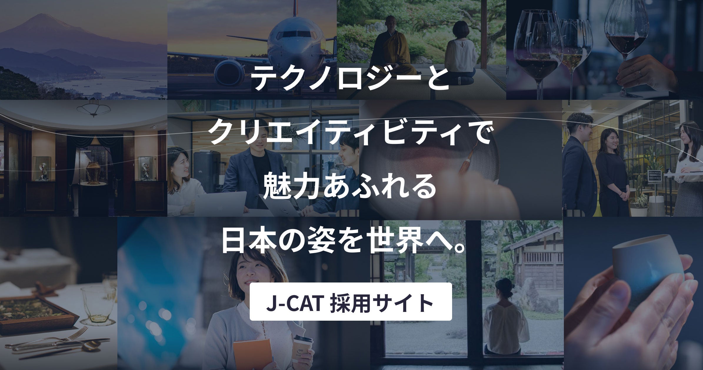 J-CATは、2019年の設⽴以来「テクノロジーとクリエイティビティで、魅力あふれる日本の姿を世界へ。」というミッションを掲げ、「Otonami」「Wabunka」を軸に事業拡大を続けてまいりました。今後さらに地域に潜むコンテンツを発掘すると共に、全国各地の事業者を支援してその魅力の訴求に寄与することを目指します。そのためには、これまで以上に業界の変革に想いを持つ「人」の力が必要であると確信しています。