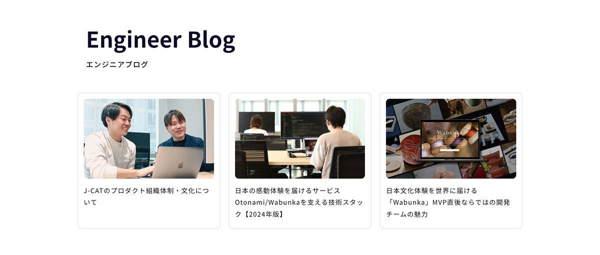 今回のリニューアルにあわせ、採用サイト内にプロダクト開発部による「エンジニアブログ」も開設。J-CATの開発思想を発信してまいります。