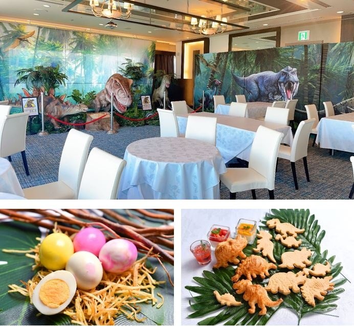 会場のテーマは、お子さまに大人気のダイナソー。会場内には様々な恐竜のモチーフを取り揃えました。ホテルプラザ神戸オリジナルの動く恐竜もお客様をお出迎えいたします。お好きな食材でアレンジできるハンバーガーなど、お子さまにも喜んでいただけるメニューもご用意しておりますので、ご家族でぜひお越しください。