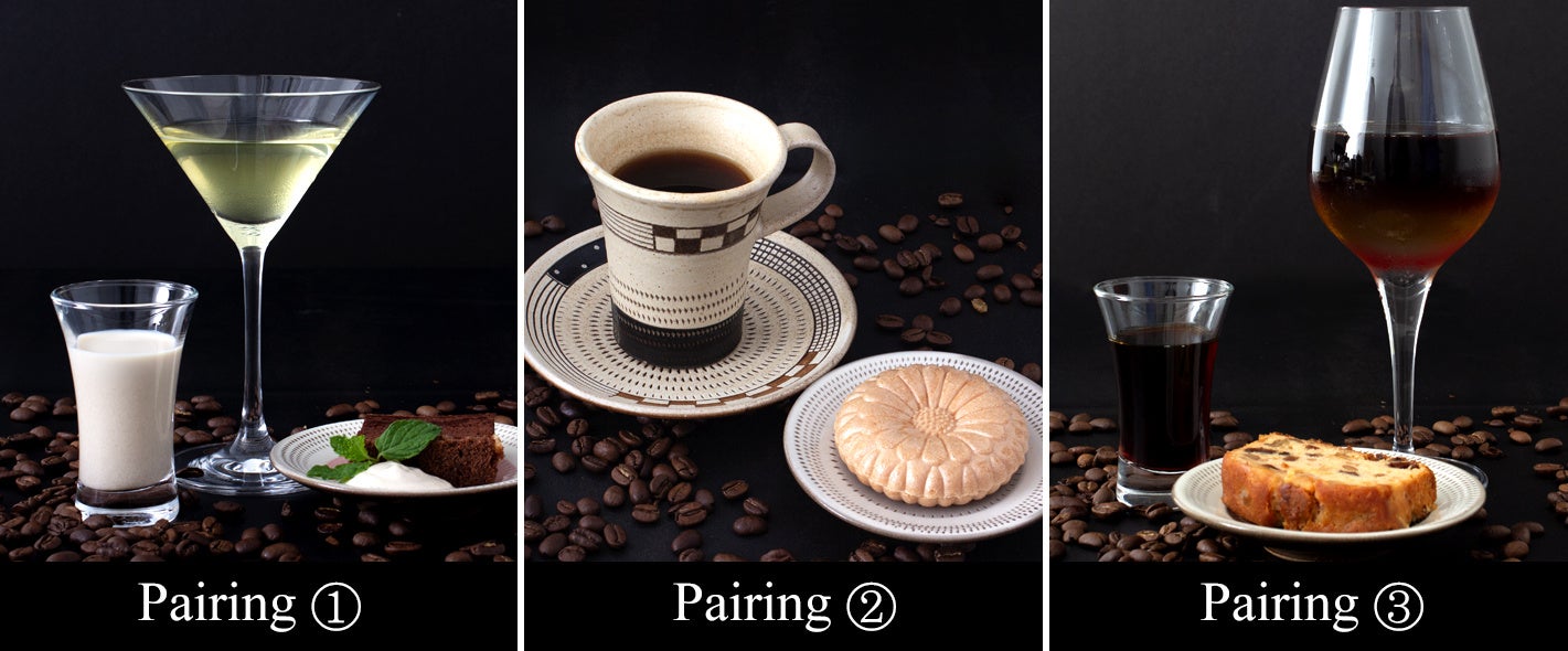 毎回、1種類のコーヒー豆にフィーチャーし、様々な抽出方法でホテルメイドスイーツとの味と香りのペアリングを体験していただく本イベント、記念すべき第1回は、酸味が特徴的なケニア産のコーヒー豆をベースに、3種類の方法(コールドブリュー・ミルクブリュー・ペーパードリップ)で抽出した5種類のドリンクと、ホテルメイドスイーツの「フルーツパウンドケーキ」「モアールショコラ」、クロスポイントオリジナルブレンドのエスプレッソを使用した「最中ティラミス」をご用意しました。収穫から精製、乾燥に至るまで、丁寧に作られた、高品質なケニア産コーヒー特有のオレンジやシトラスを想わせる風味と、ホテルメイドスイーツとの調和、またケニア産ならではの躍動感ある味わいを実験感覚でお楽しみください。