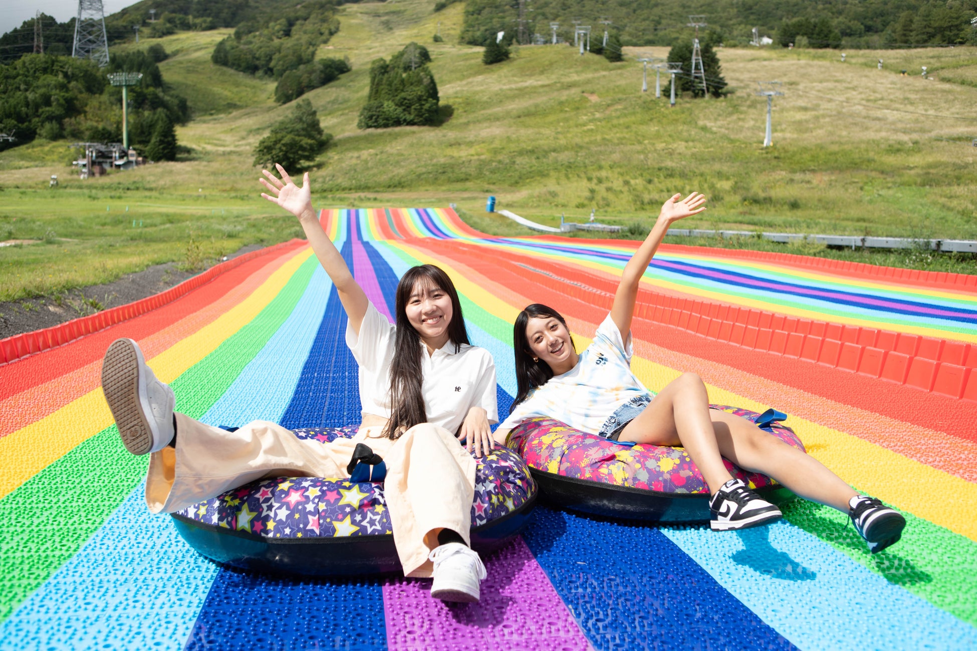 広大なゲレンデに映えるレインボーカラーのスライダーは、約100mの長さをチュービングに乗って、疾走感を体感いただけます。夏だけでなく、秋まで楽しむことができます。