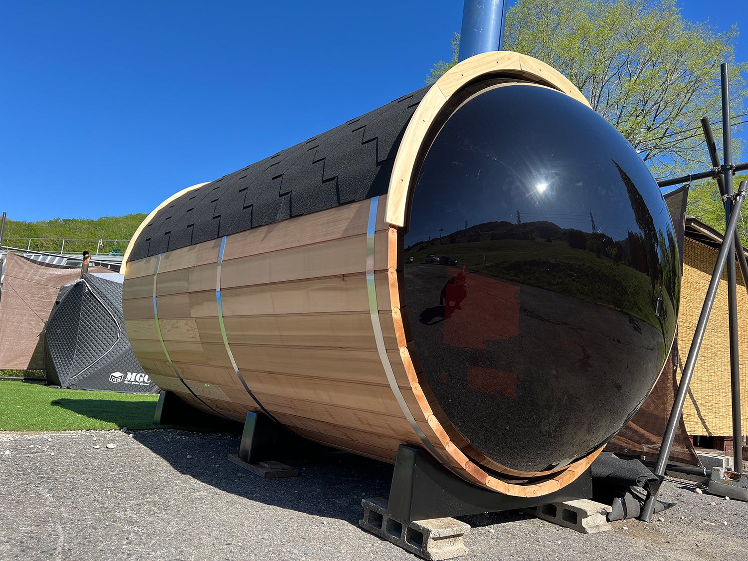 大きな窓が特徴的な「バレルサウナ」