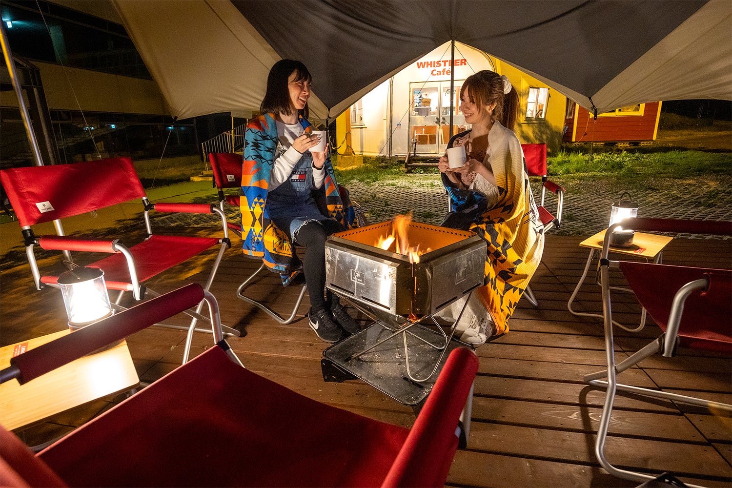 日差しの強い日や、雨の日でも難燃性のタープが設置されているので、安全・快適にお楽しみいただけます。