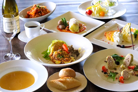 朝食ブッフェからお好きなお料理を詰め込んで!朝の清々しい空気の中の朝食はいかがですか。花と緑に囲まれて大切な人と過ごす至福の時間は日常の喧騒から離れホッと心を癒すひと時となります。