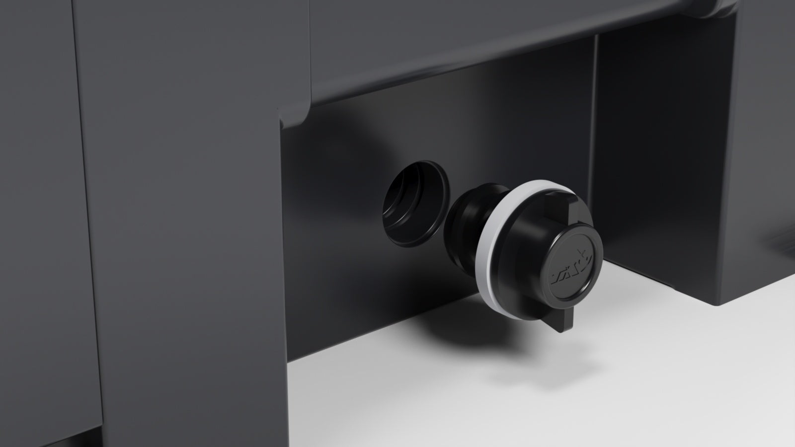 開ける際は扉のポールを回すだけでロックが解除でき、閉める際は押し込むだけでロックできる構造となっております。簡単に水抜きができるようサイドには水栓がついております。