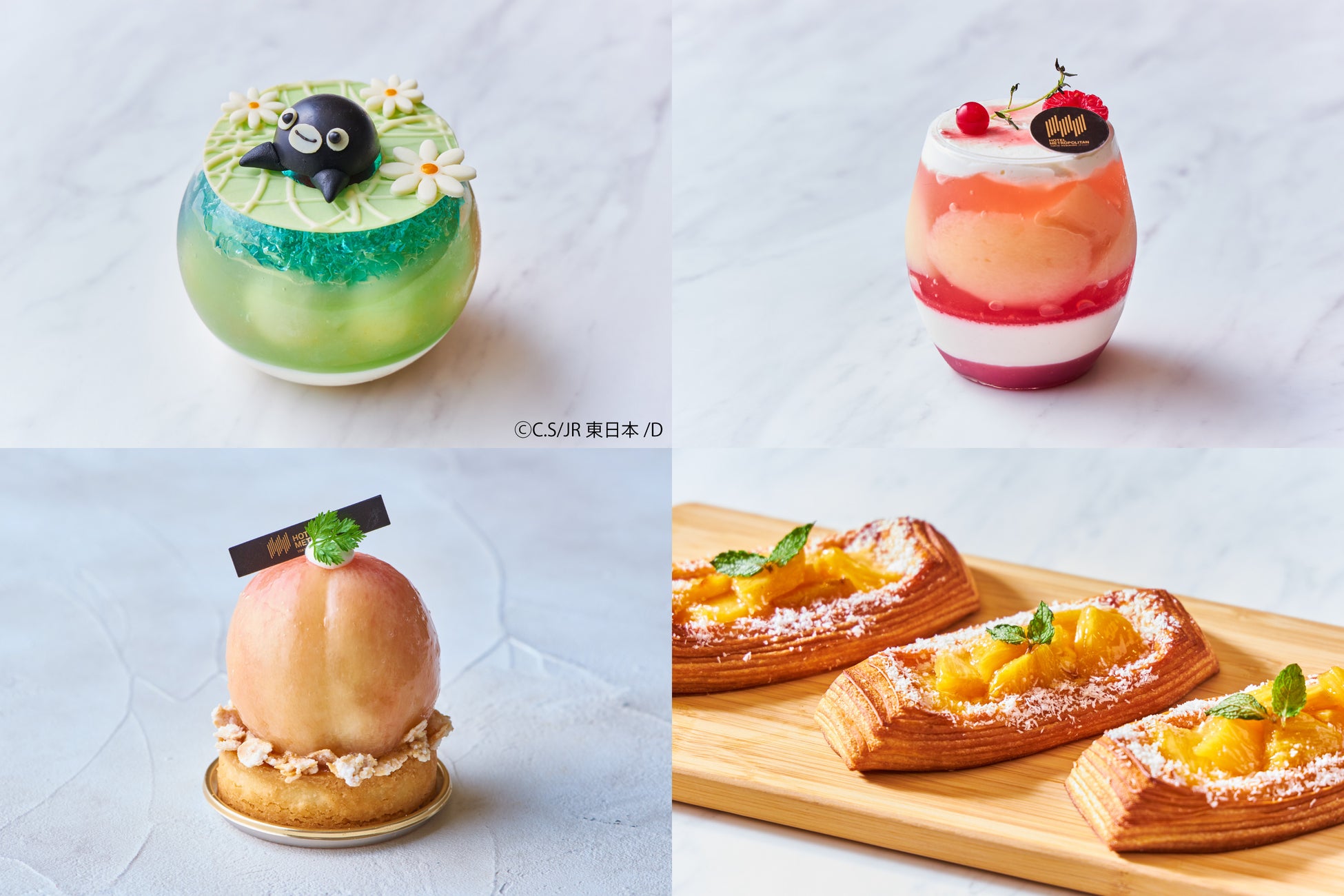 ホテルメトロポリタン(豊島区西池袋1-6-1 総支配人 伊藤 茂夫)では、2024年7月1日(月)より、可愛らしさが毎年大人気の「Suicaのペンギン フルーツゼリー」が、装い新たにメロンゼリーとなって登場いたします。また、みずみずしくて甘く、ジューシーな桃をご堪能いただけるタルトとヴェリーヌ、夏にぴったりな爽やかテイストのアナナス(パイナップル)のデニッシュを販売いたします。お集まりのお手土産や、ティータイムのひと時にぜひご利用ください。