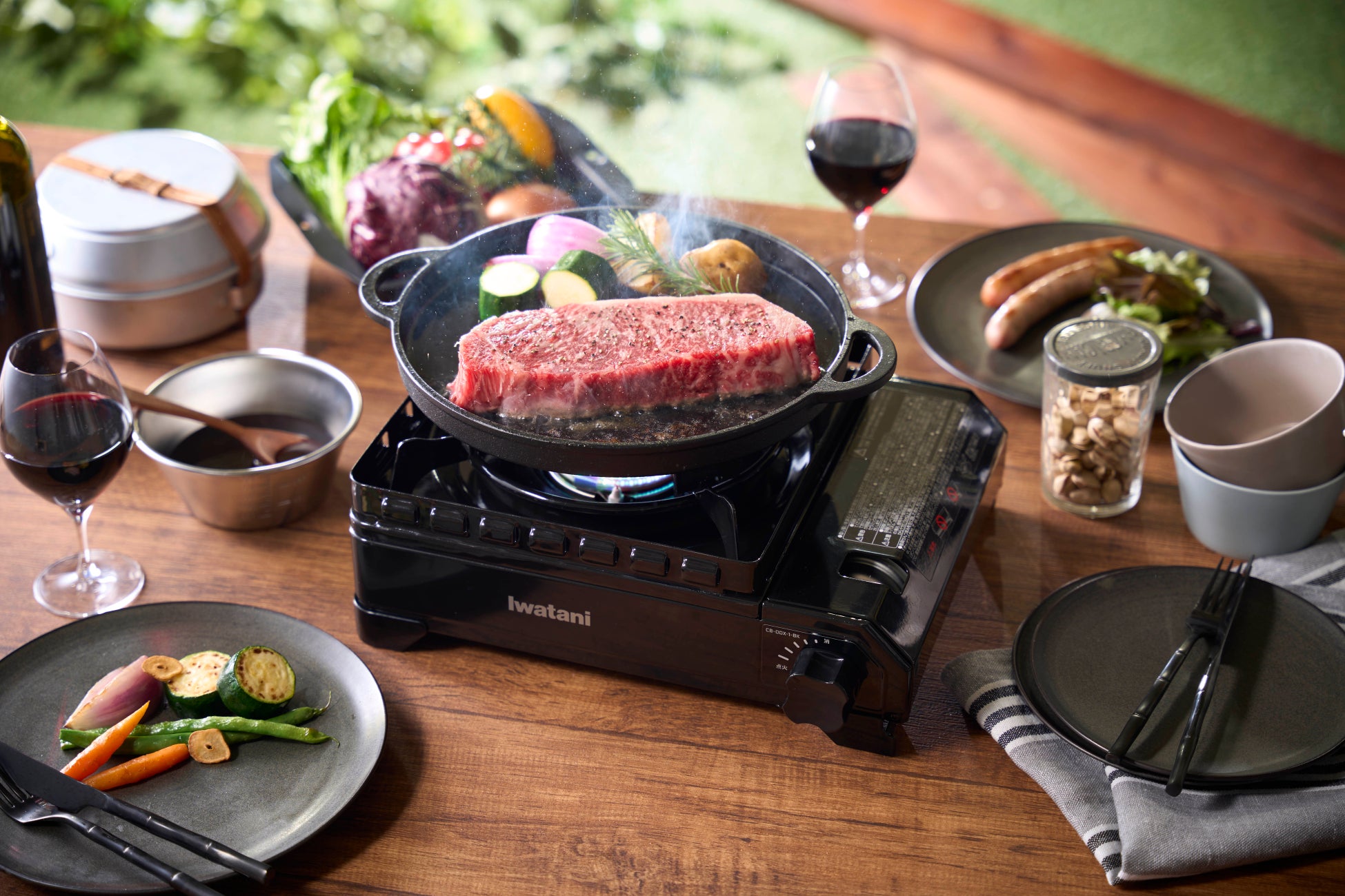 本商品は鉄鋳物製のため、アルミフッ素プレートやフッ素樹脂をコーティングしたフライパンと比較して蓄熱性が高く、お肉に効率よく熱を加えるのはもちろん、余熱調理が可能です。ステーキ肉を常温に戻してから焼き、余熱で火を通すことで味・香りともに美味しく※焼き上げることができます。火からおろしても温かいお肉が食べられるため、お客様へのおもてなしや冷めやすいアウトドアの場面にもおすすめです。