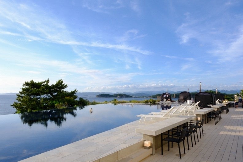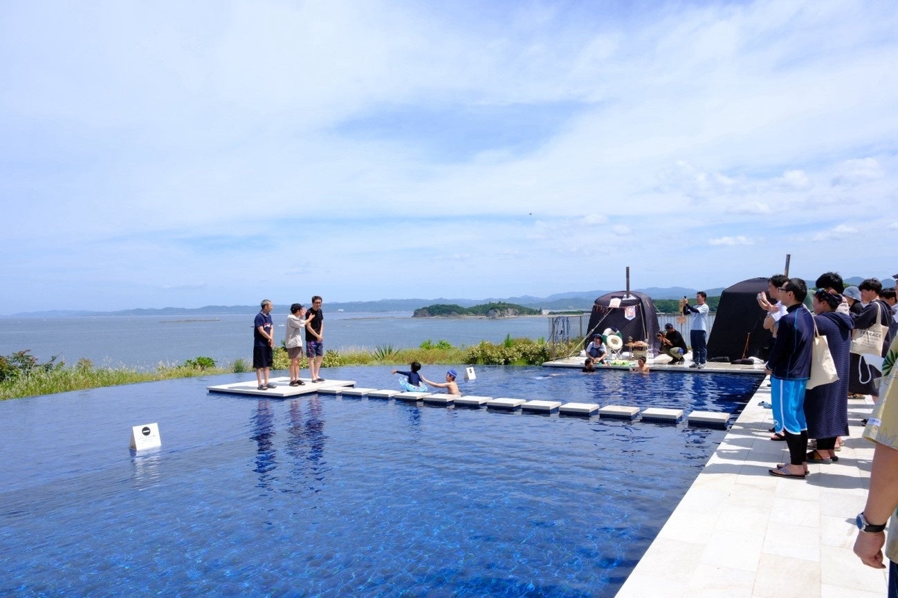プール脇のテントサウナでは、皆さまは広い空とオーシャンビューを臨む開放感を味わいながら、サウナ+水風呂+休憩を体験いただきました。