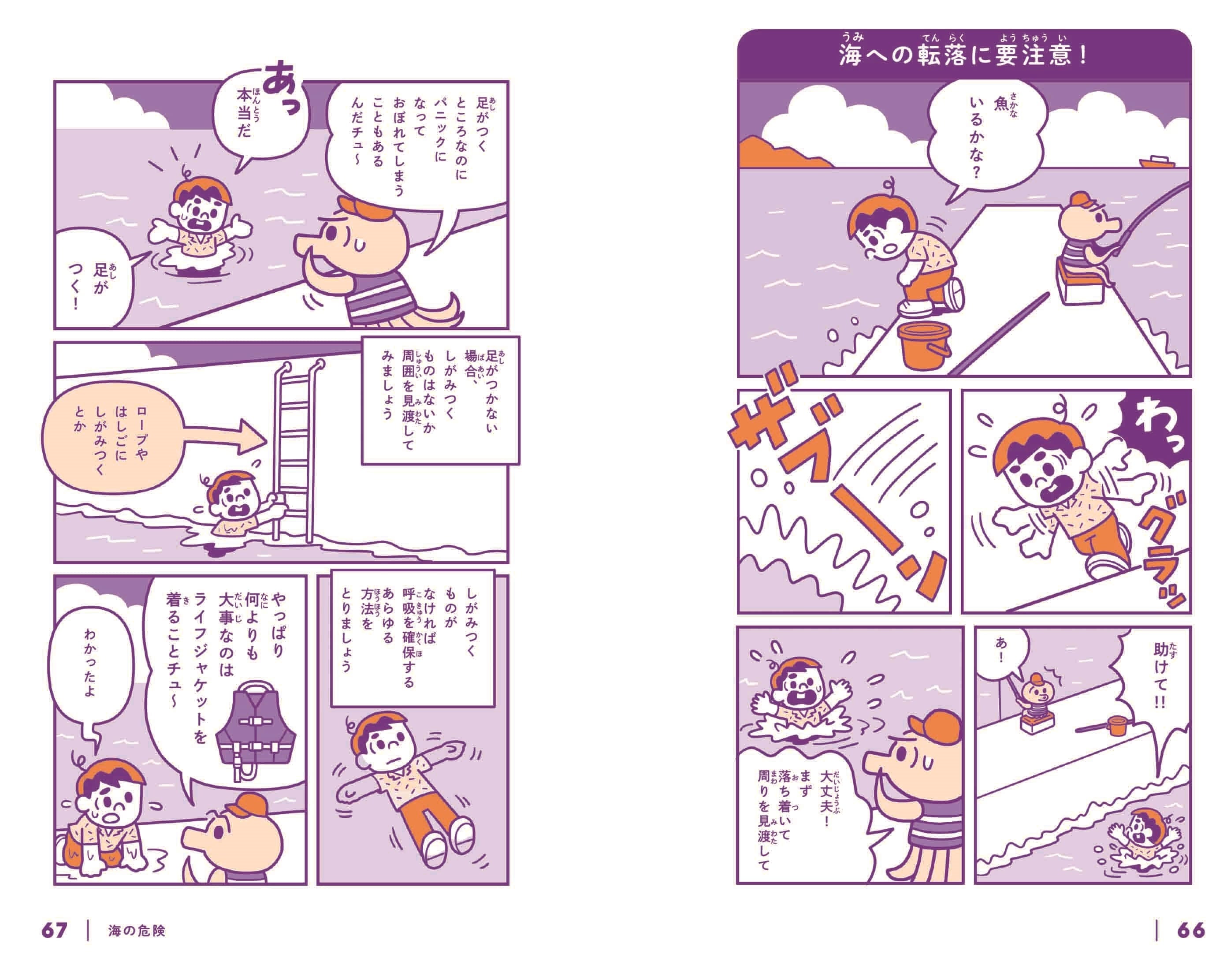 漫画:海への転落に要注意!/海水浴はライフセーバーのいる海で