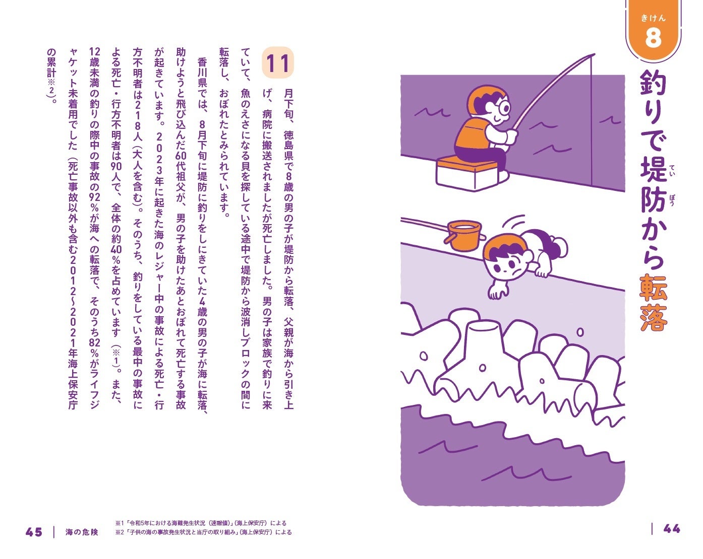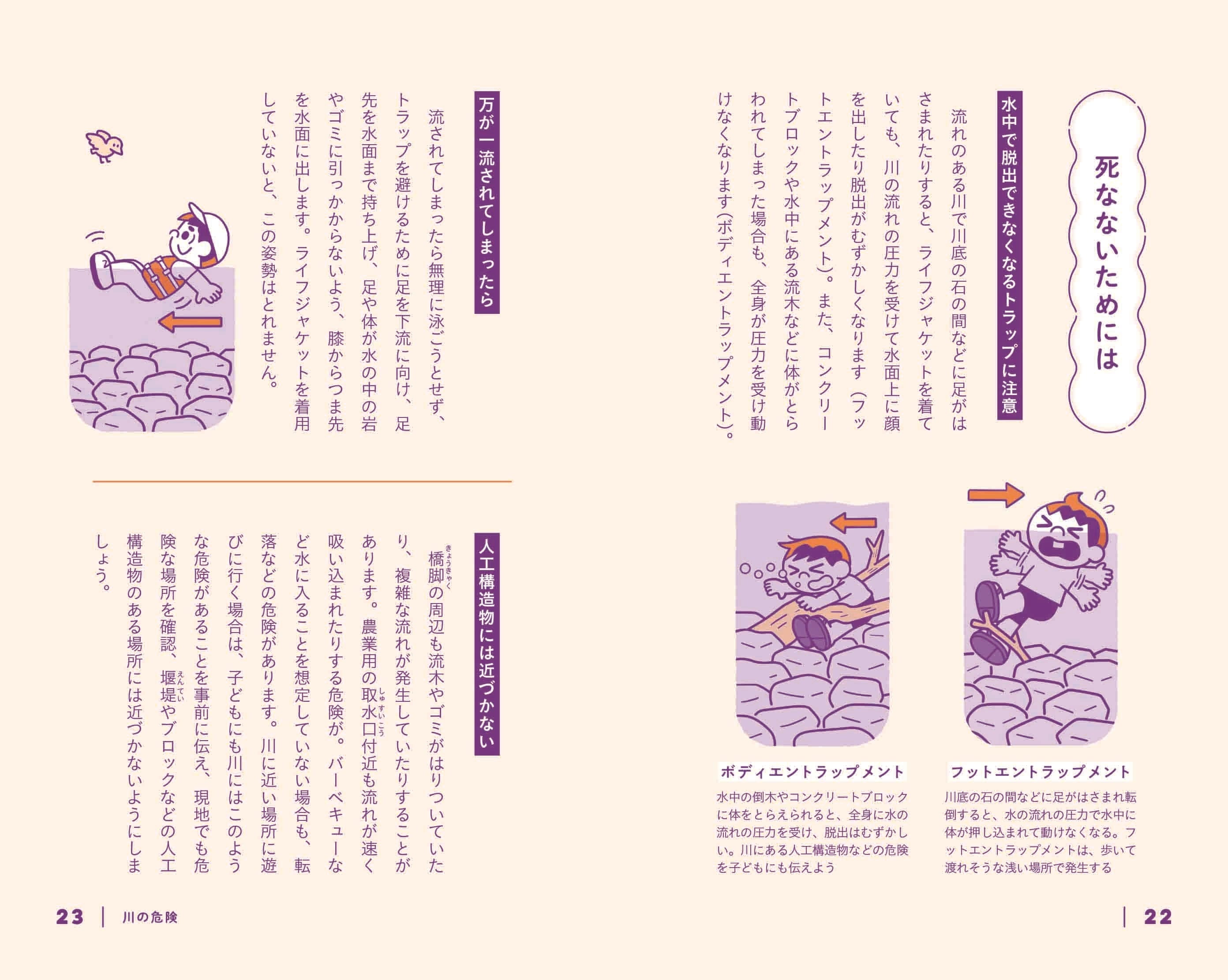 本書では、川・海・山・身近な公園で実際に起きた子どもの事故事例28を紹介。それぞれの場所で事故防止策・安全啓発を発信しているプロの監修のもと、どうしたら事故を防ぎ、安全に楽しむことができるかを徹底的に解説しました。