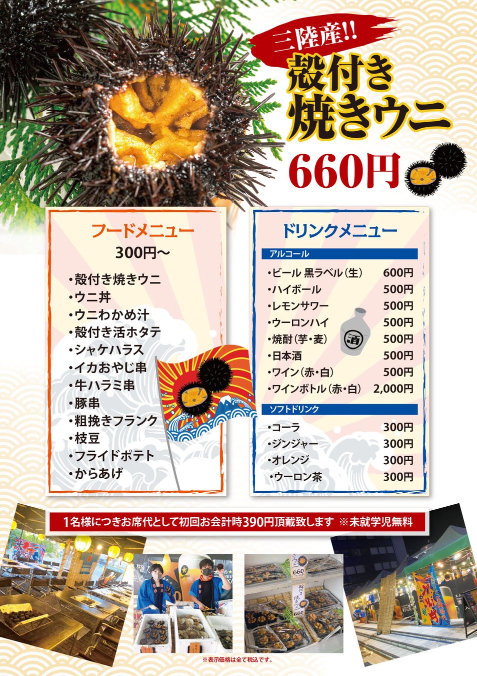 【殻付きウニ】をはじめとした海鮮バーベユーの限定出店!
