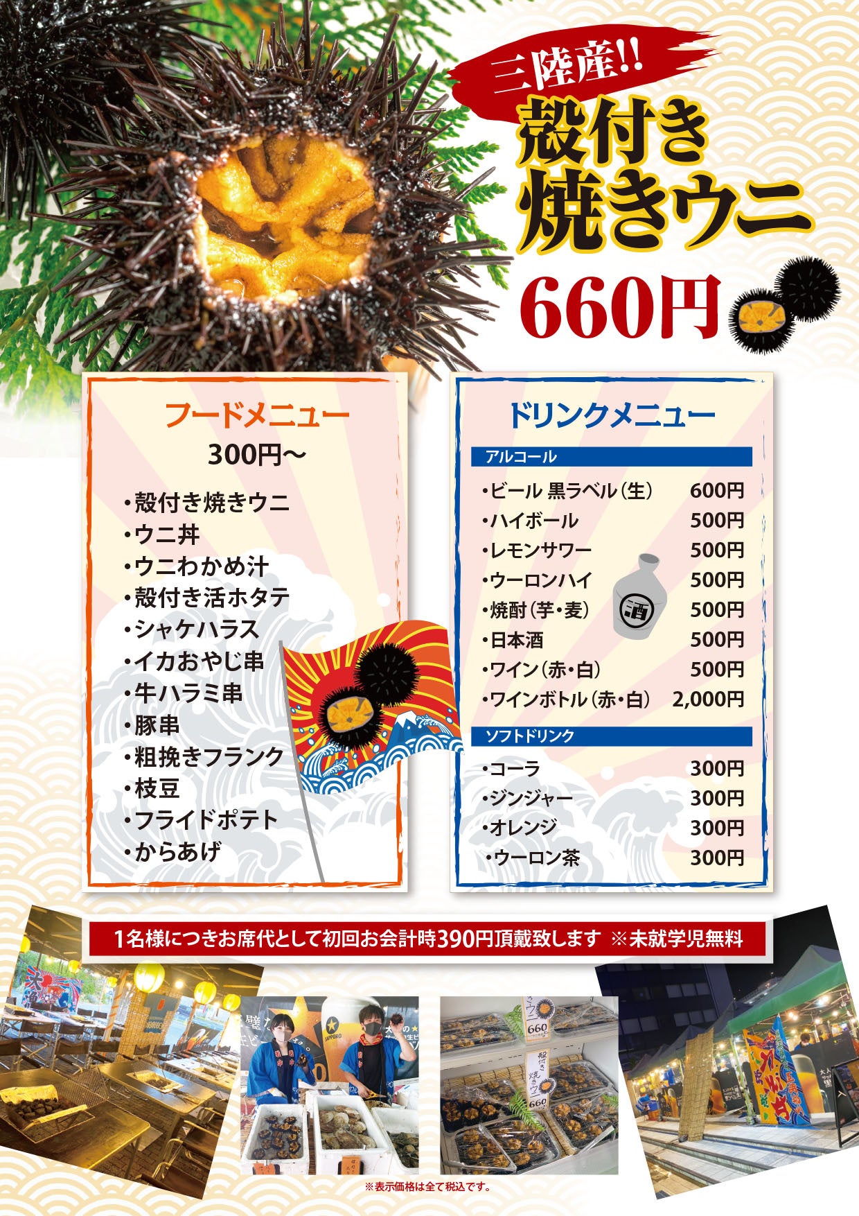 旬の新鮮な殻付き焼きウニが660円!!日替わり食材も多数登場!?
