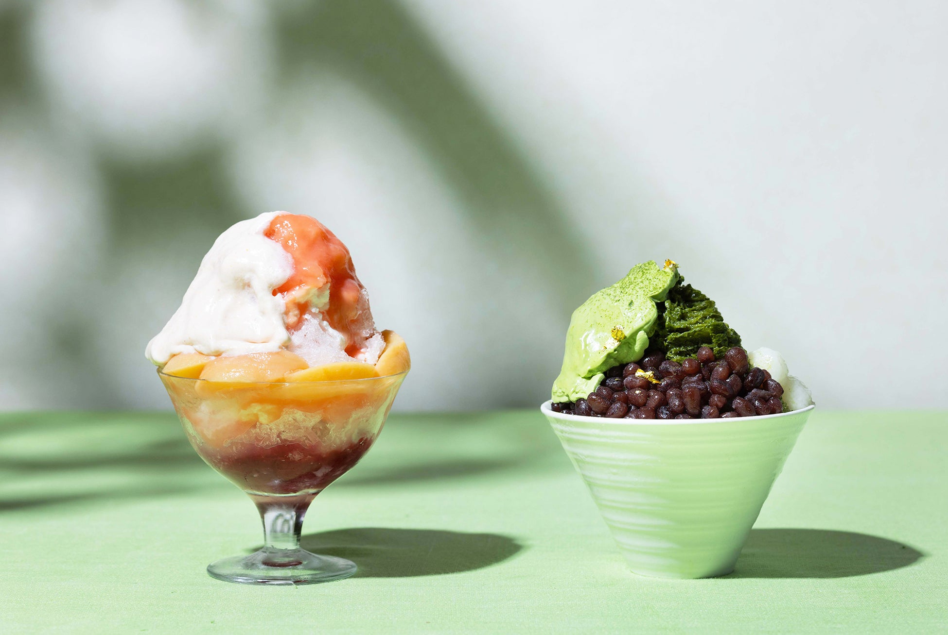 また、ほのかな苦味も味わえる「抹茶」は、抹茶を贅沢に用いたシロップやコンデンスミルク、ふっくらと炊いた北海道産の大納言小豆につぶあん、モチモチとした食感の白玉を添えました。ふんわりかけた抹茶のエスプーマが、さらに抹茶味を感じさせる“和風”のかき氷です。