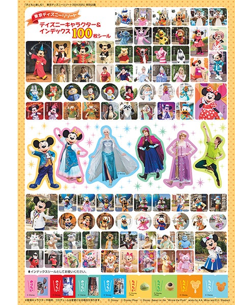 2大付録は、ブックインブック「子どもと楽しむ満喫ガイド」とディズニーキャラクター&インデックス100枚シール。切り離して持ち歩けるブックインブックは、人気アトラクション、大好きメニューなどの5つのテーマと子連れでパークを満喫するための10のテクニックで楽しみ方をサポートします。両パークのMAPもついているので、来園時に役立つこと間違いなしです。キャラクターシールは好きなところに、インデックスシールはガイドブックに貼るなどして楽しめます。