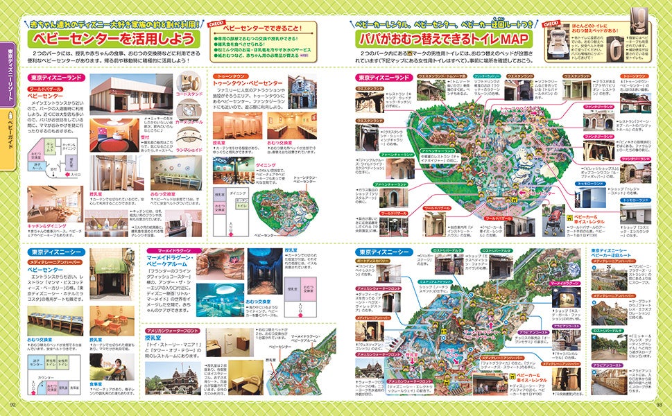 キッズメニューの一覧や、オムツ替えできるトイレの場所など、保護者の「知りたい!」がつめこまれた内容はそのままに、今回アップデートされた見どころは、6月6日に東京ディズニーシー®にグランドオープンしたばかりの新テーマポート・ファンタジースプリングス特集です。