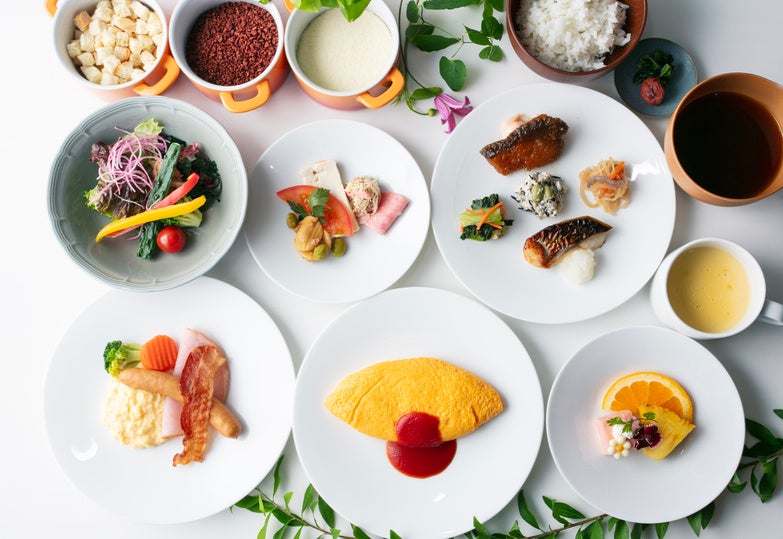 カラダの内側から元気になる、こだわりの朝食。「well-being」、「地産地消」をテーマに地元素材にこだわり、カラフルなサラダバーやスーパーフードを使用した約60種類の彩り豊かなお料理をブッフェスタイルでお愉しみいただけます。ライブキッチンではできたての卵料理をご用意、手羽先の唐揚げや味噌串カツなどの名古屋めしもお召し上がりいただけます。