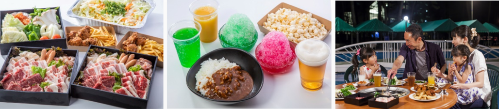 ボリューム満点のお肉や野菜、揚げ物セットなどをご用意。さらに、デザートのかき氷やポップコーンが食べ放題!生ビールやハイボールなどのアルコールはもちろんソフトドリンクも飲み放題!コテージ・ヒムカのプールサイドで、家族や仲間とわいわい楽しみませんか。