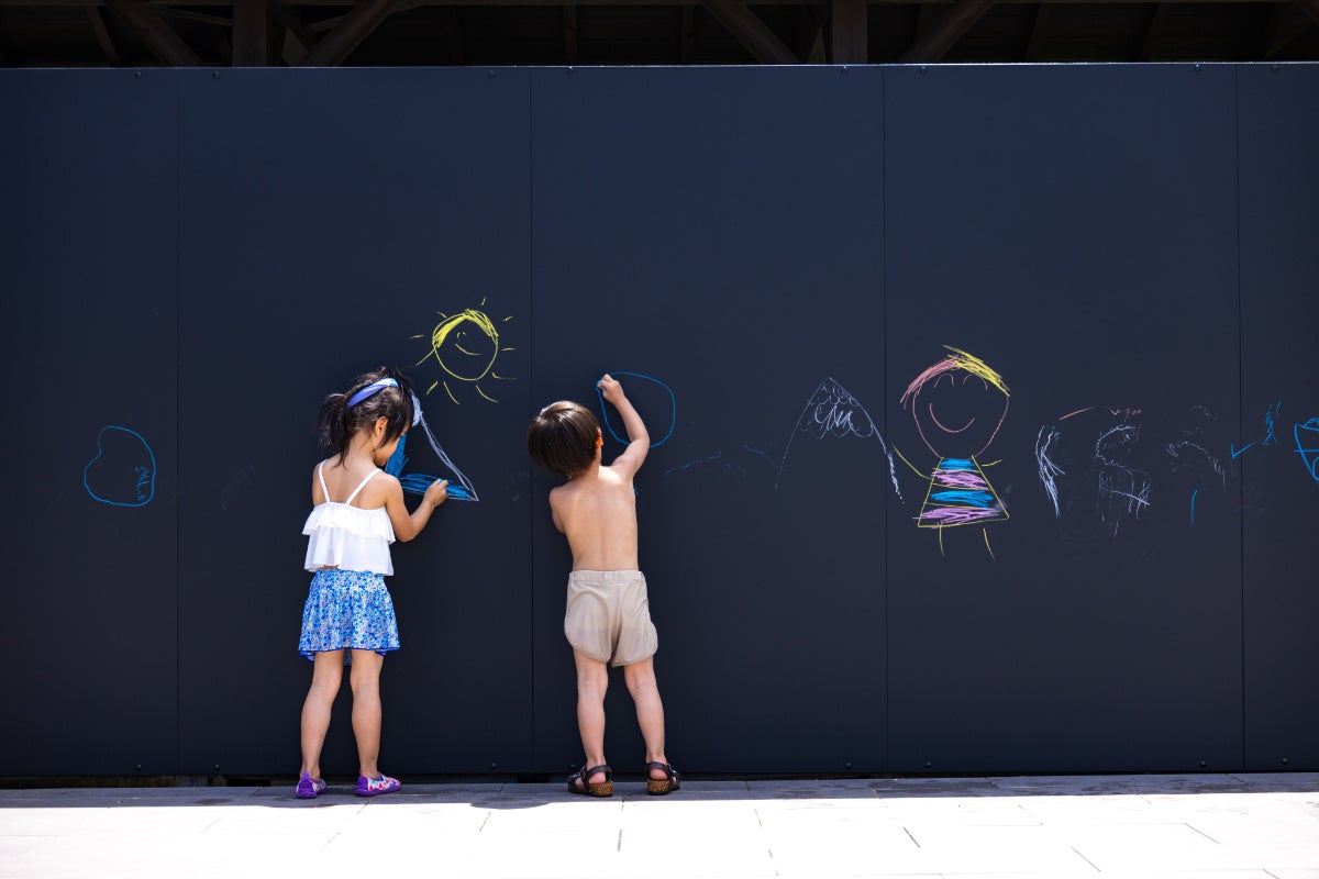 プールサイドにおっきな黒板が新登場!プール遊びの合間に、お絵かきタイム♪