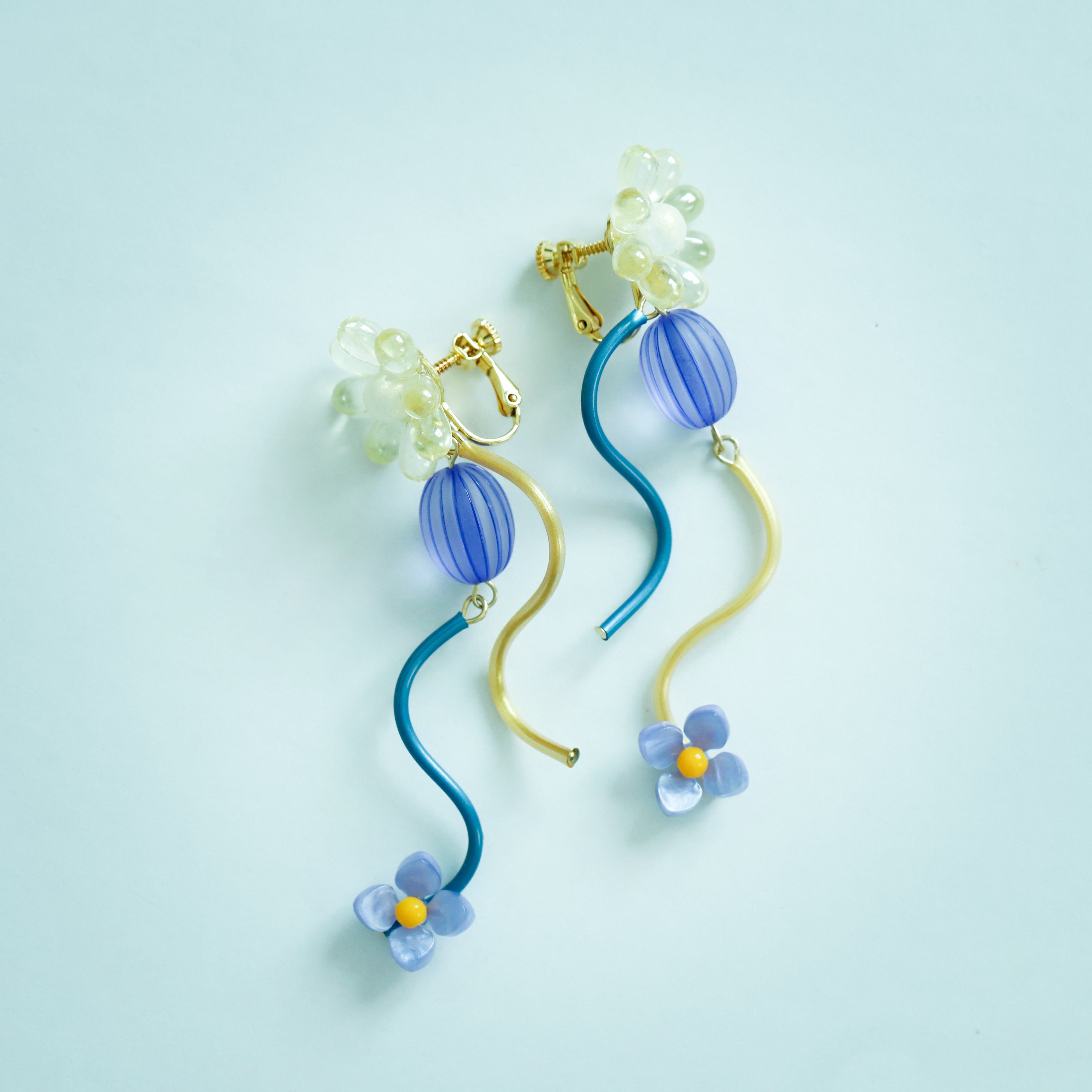 “日常に推し生物”がコンセプトのアクセサリーブランド。鮮やかで美しいハナヒゲウツボをイメージしたイヤリング。