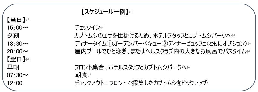 ■カブトムシ採集探検宿泊プラン概要