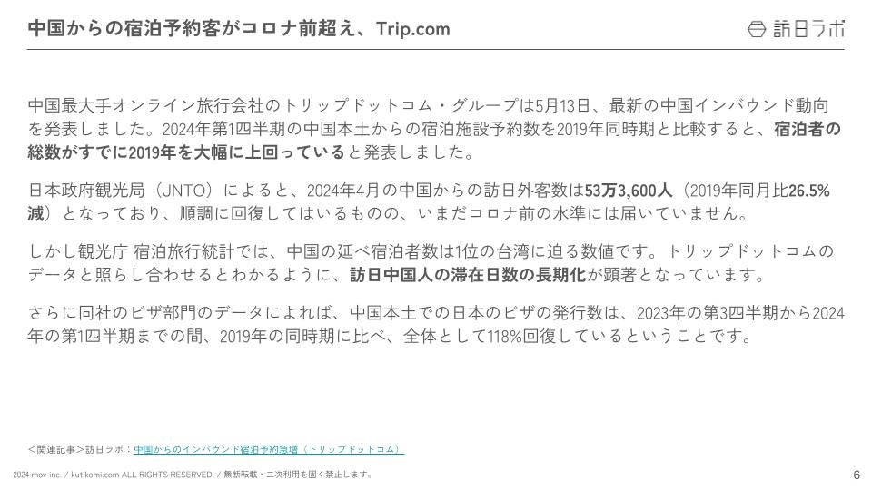 中国からの宿泊予約客がコロナ前超、Trip.com